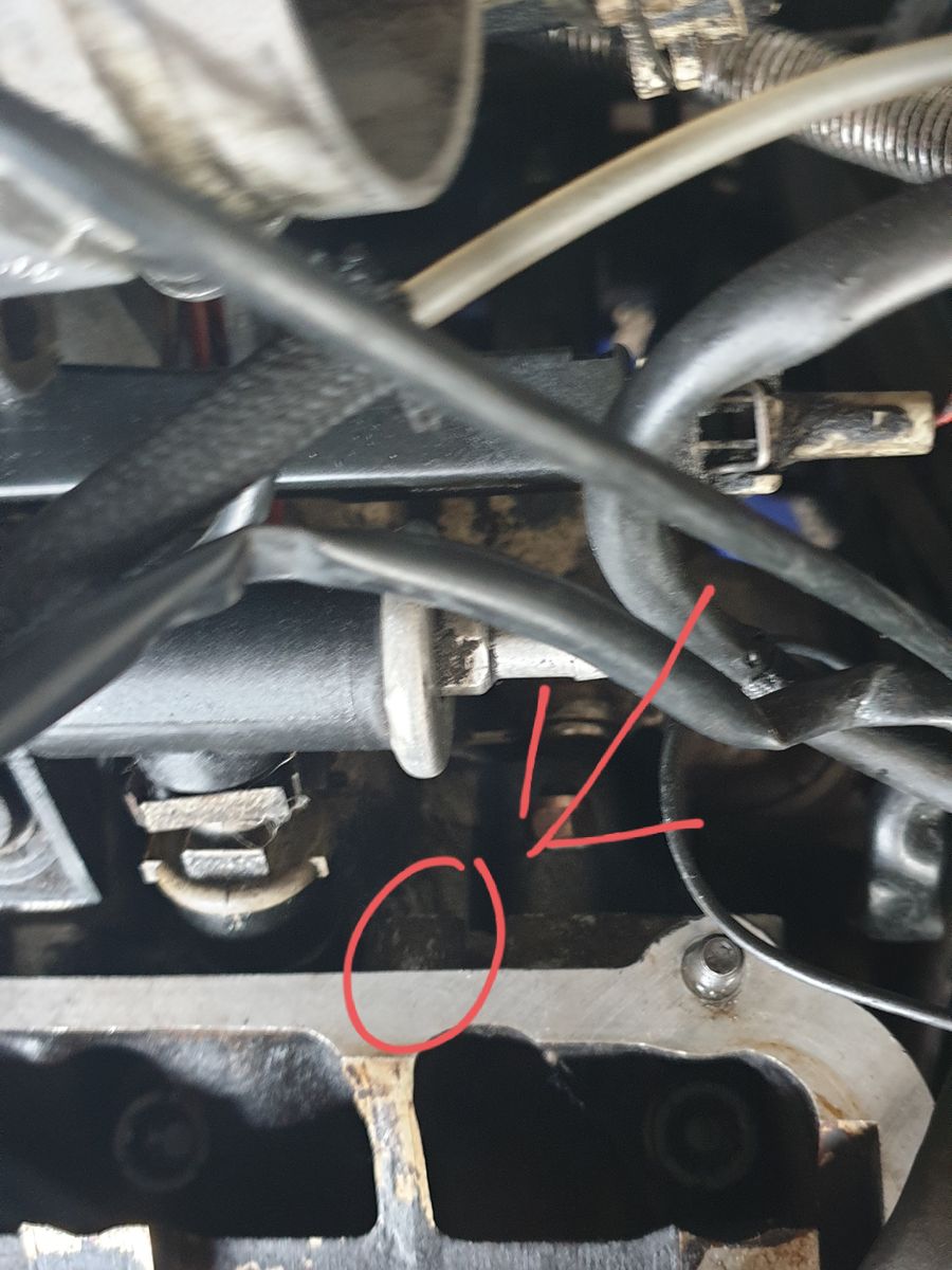 Des Weiteren weiss ich nicht genau wo der Sensor hin kommt bzw. welcher das ist. Wärme ZK? Ich meine Hinten an den ZK neben die Einspritzventile. Siehe roten Kreis?