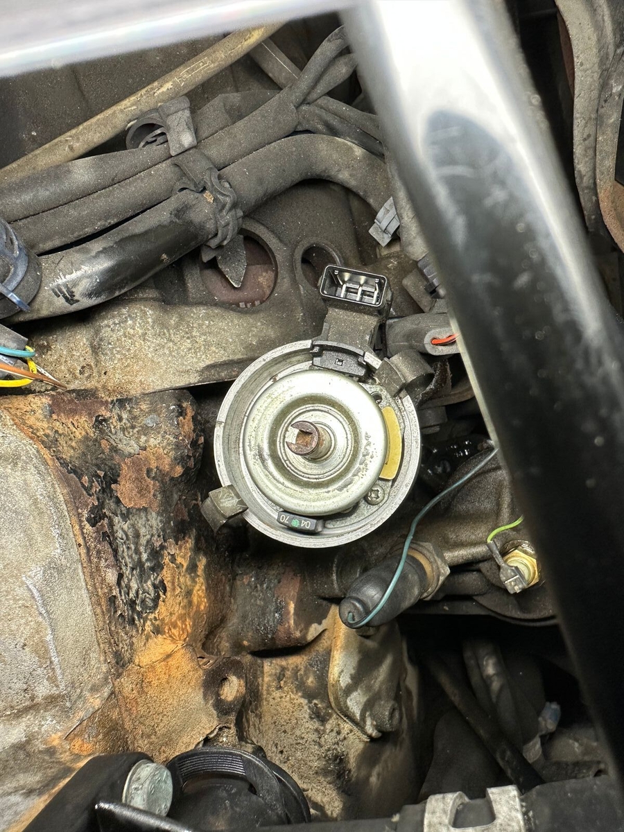 • So hab auf OT gestellt den Verteilerfinger mit der Kerbe 4mm vor OT gedreht. Sprang gut an und nahm auch Gas an.