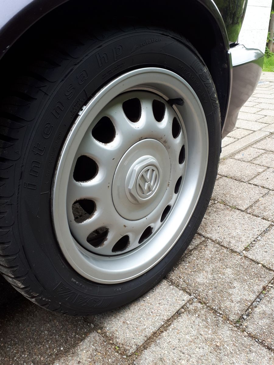 Die neuen sind low budget G60 Stahlfelgen. Die bleiben bis ich irgendwann mal vernünftige Estoril Felgen finde und somit wieder komplett Original unterwegs bin.