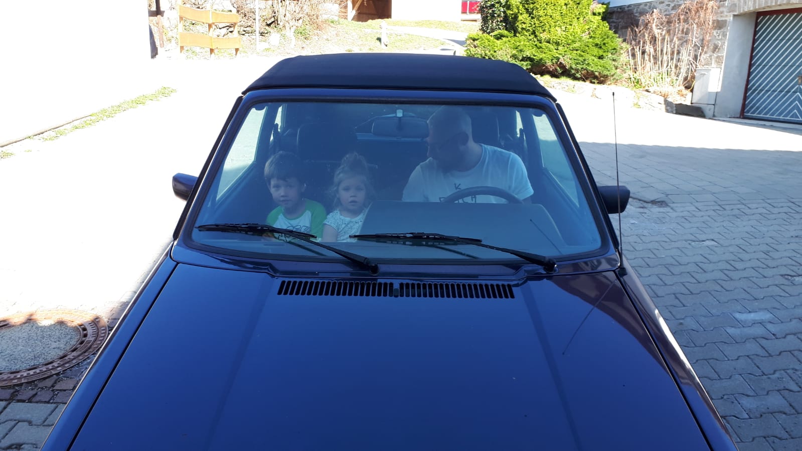 Natürlich wollte jeder mitfahren, aber da man ja hinten keine Kinder mitnehmen darf, mussten beide vorne Sitzen