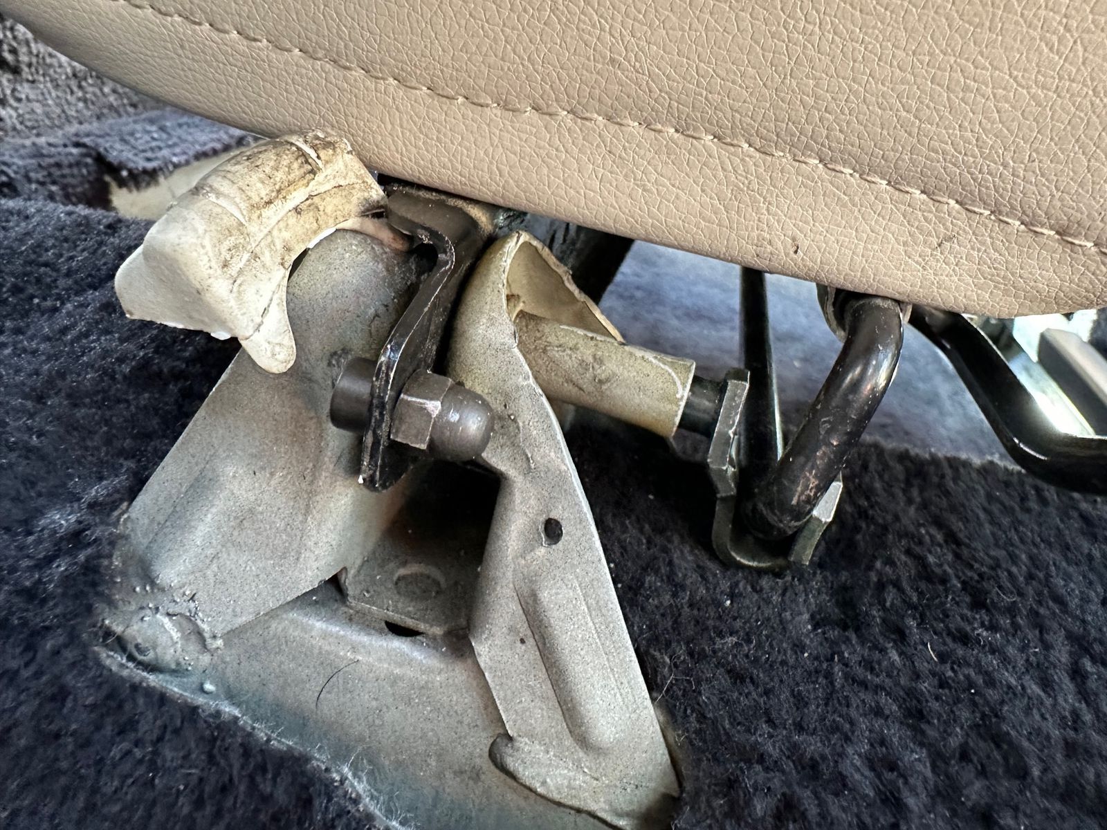 Auf jeden Fall bekomme ich die Sitze (beide) jetzt nicht mehr weit genug nach vorne, um die kleine Schraube wieder einzusetzen.