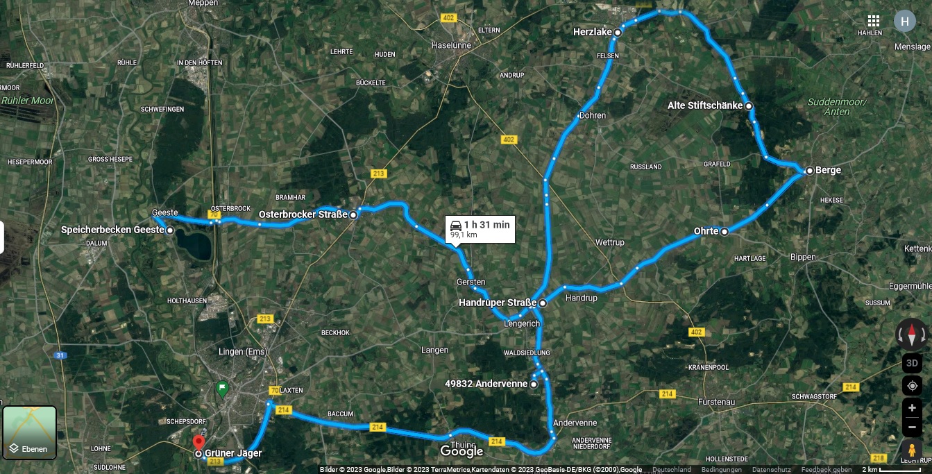 Zurück auf Straße nach Freren und weider über B214 in Richtung Lingen,