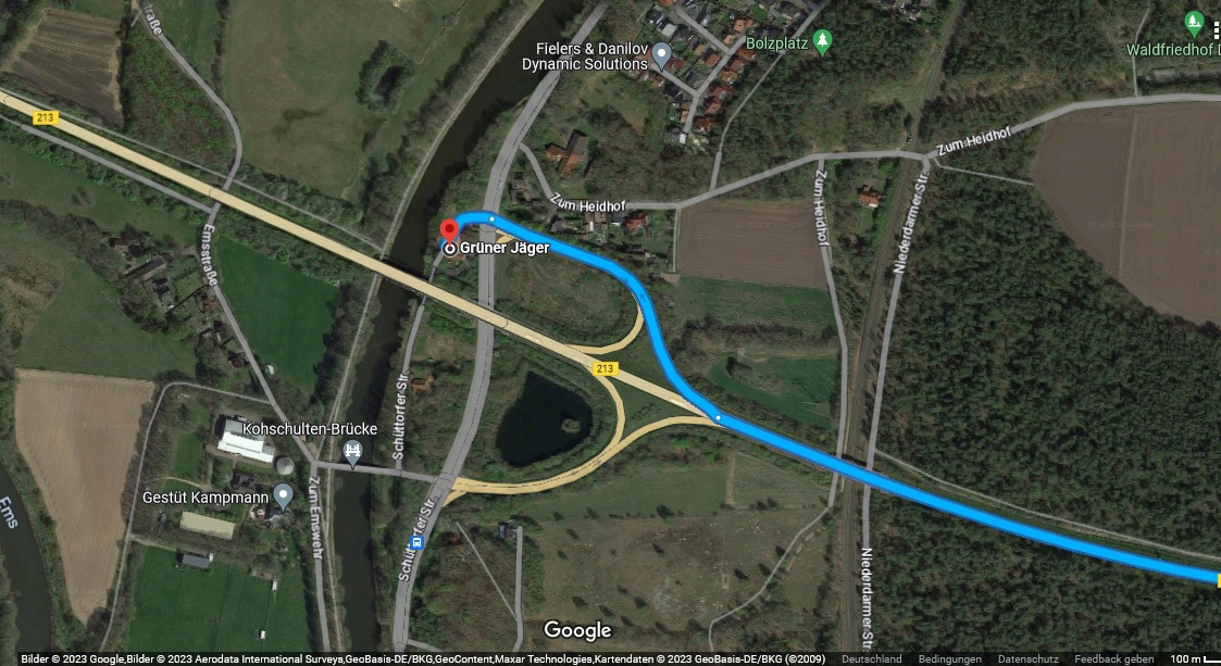 am Ende der Ausfahrt liegt der "Grüne Jäger", unser Ziel!Gesamtstrecke 100 km - Fahrzeit ca. 1/2 Stunden - da sollten ca. 3 Stunden ausreichen.