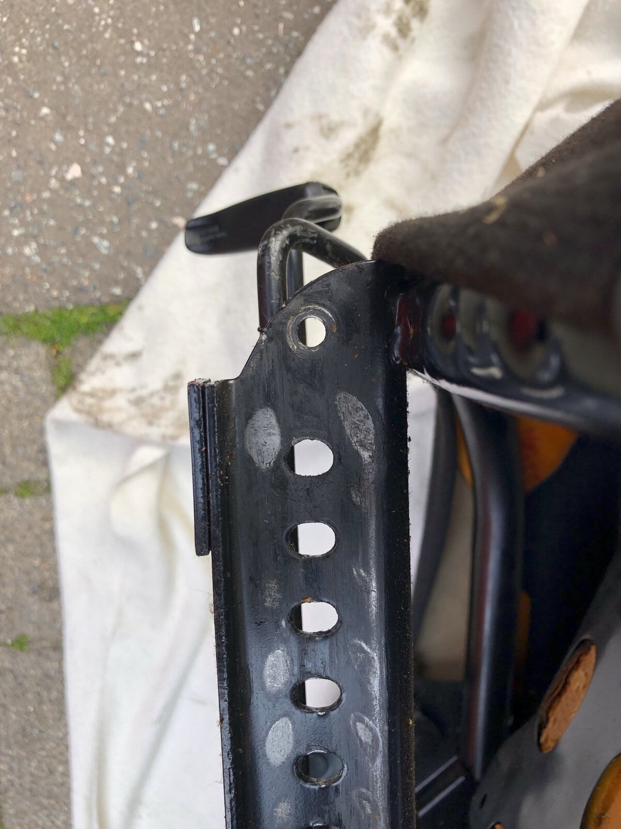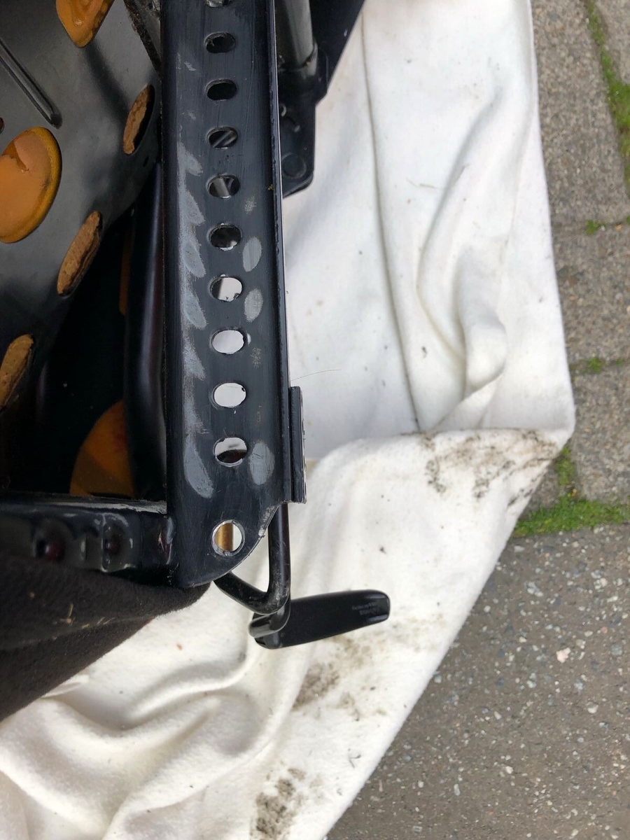 Schweißgerät und Trennschleifer rausholen um die Sitzschiene zu bearbeiten habe ich mir immer verkniffen, weil ich eben auch nicht schweißen kann. Außerdem wollte ich, dass der Sitz samt Gurtschloss noch vollständig in der Schiene ist zwecks Unfallsicherheit (brauchen wir nicht drüber reden, dass da eh nicht viel ist beim Cabrio...