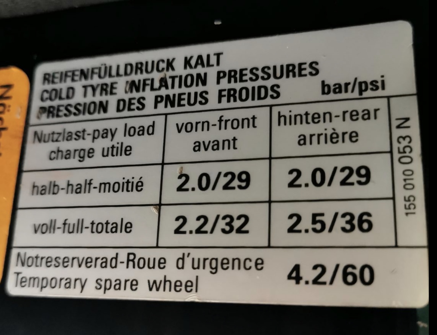 Soo schlecht finde ich somit auch die Angaben auf dem Türaufkleber nicht. Passt wohl auch 30 Jahre später mit modernen Reifen noch.