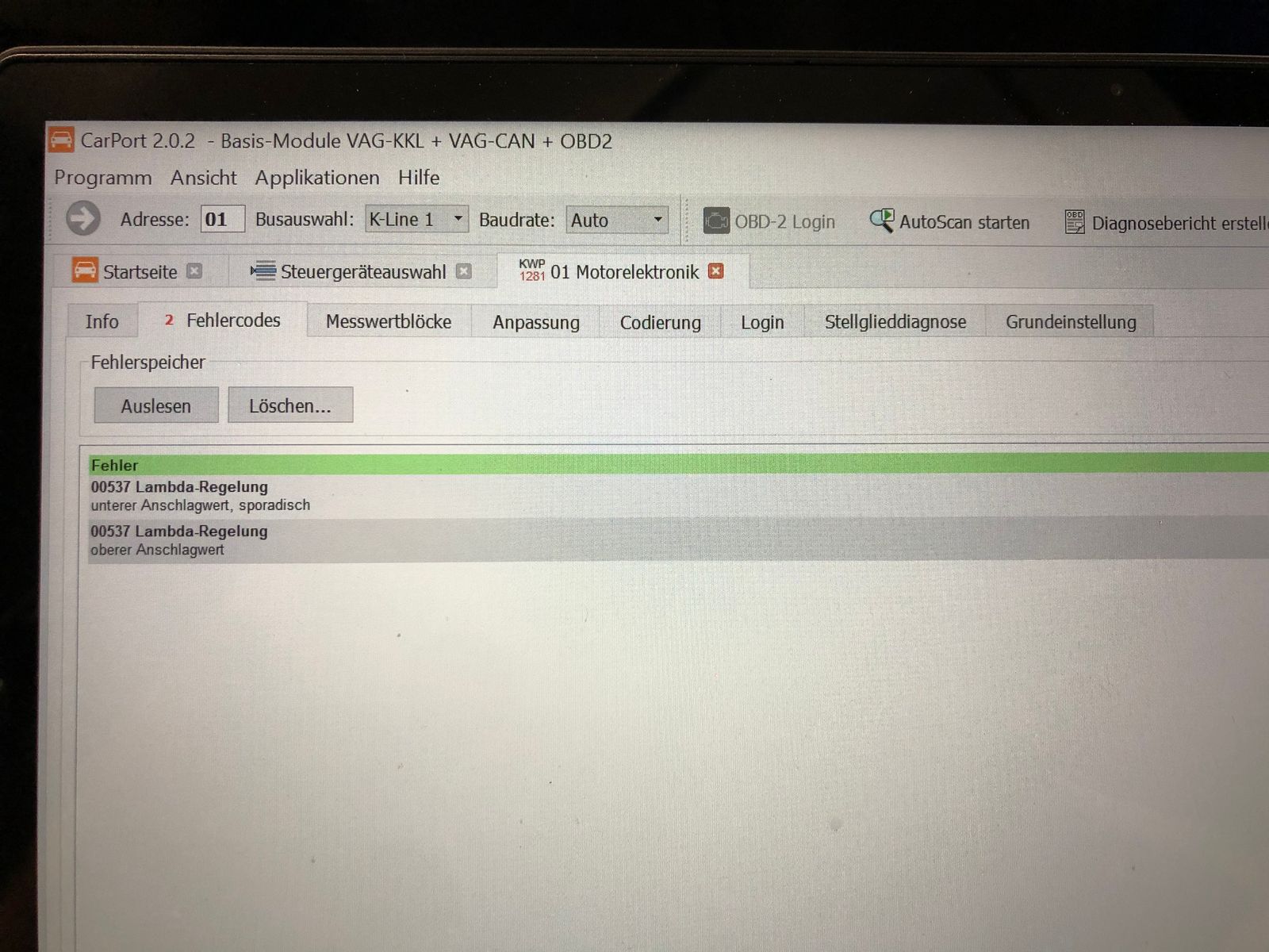 Aktuell ruckelt er immer noch im Stand etwas und der Lambdafehler 0537