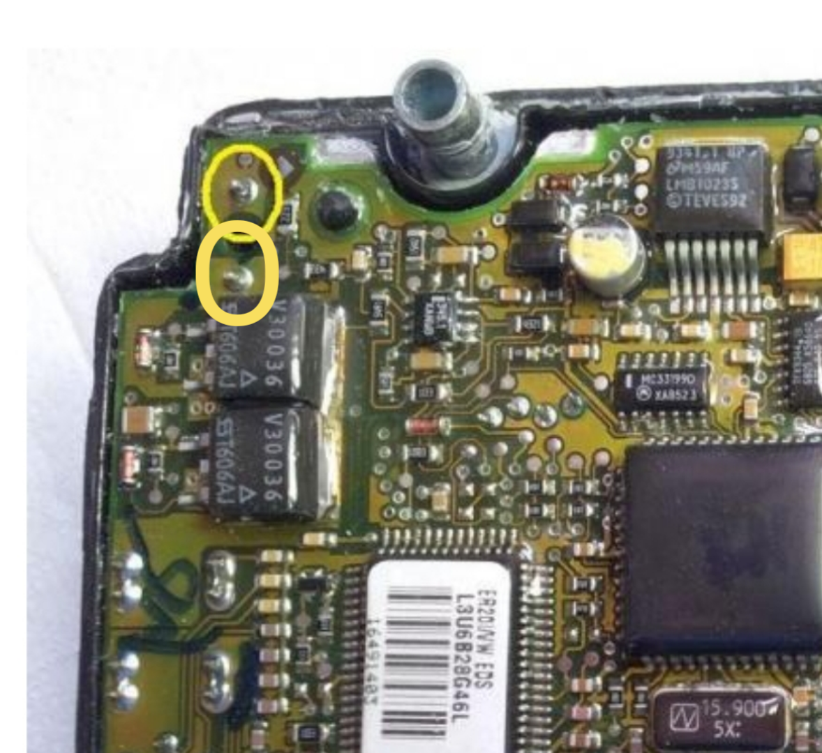 Mit der Anleitung aus dem Golf 3 Forum wurde das Gerät ausgebaut, der Deckel aufgedremelt und die beiden Lötstellen neu verlötet.