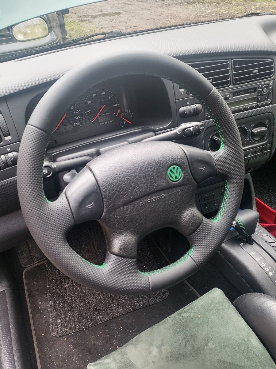 • Der Grund für die Fahrt nach Hagen war, dass mein Lenkrad und der Schaltknauf fertig bezogen waren.