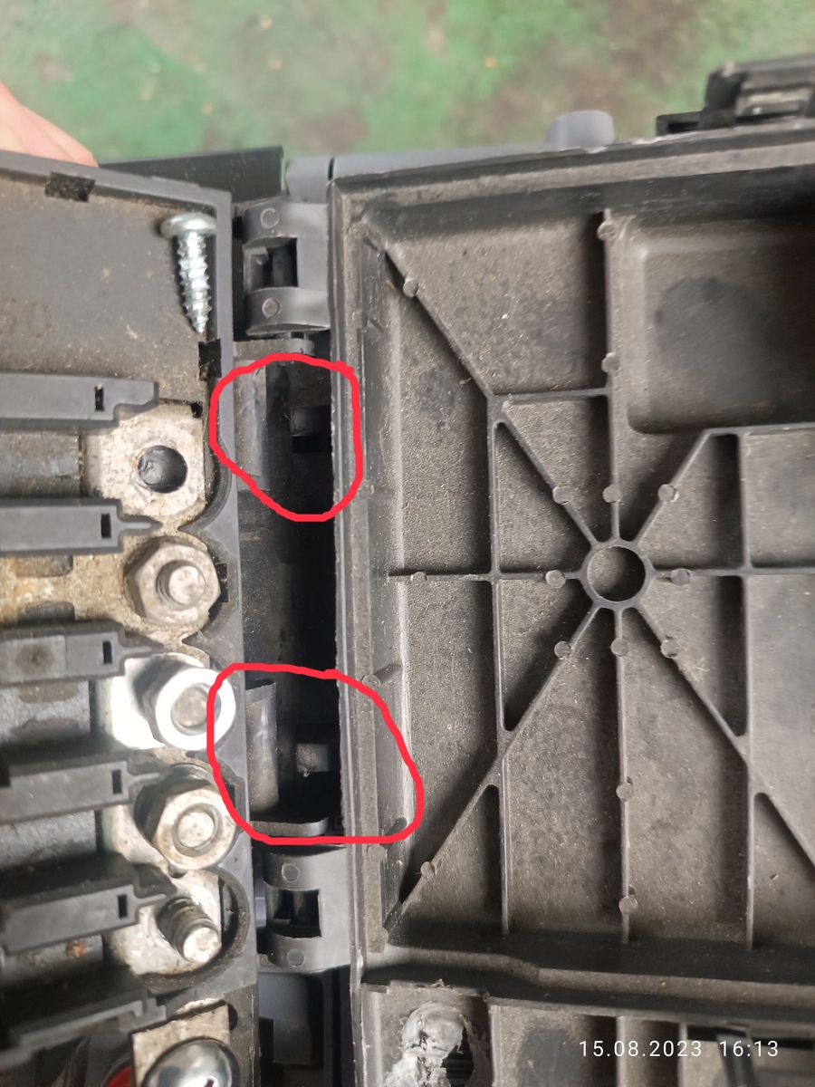 Problem : Diese Ausführung des Kastens wird anders befestigt. Die Modelle mit dem Sicherungskasten haben einen Kunststoffkasten um die Batterie herum und oben kommt dieser in eine Aussparung .
