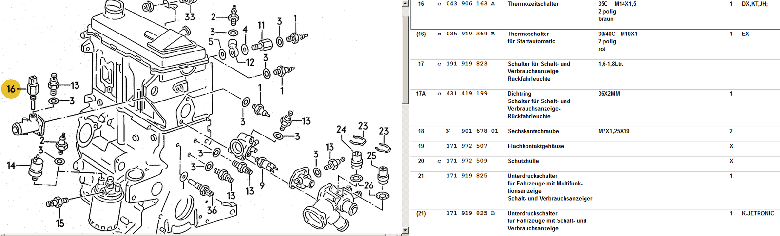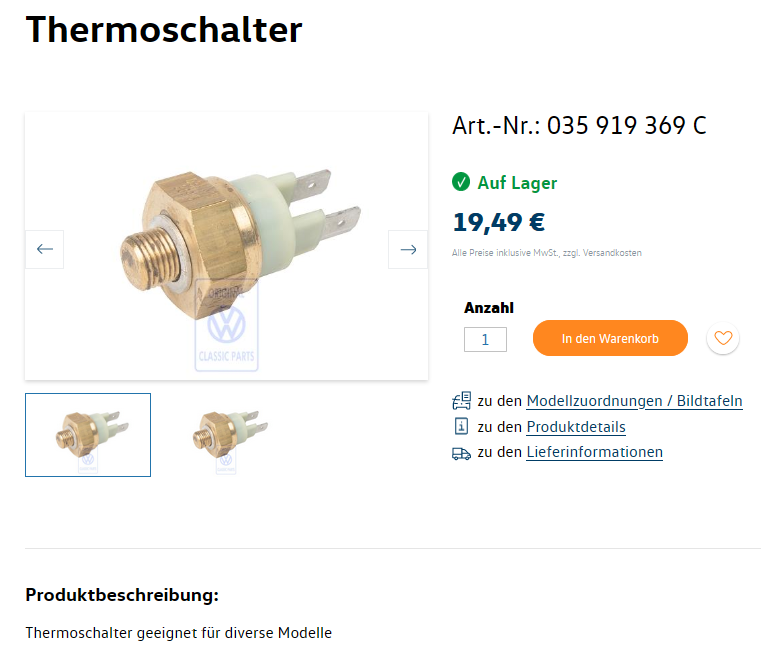 Nun kommen wir der Sache näher: Ein Lüfternachlauf. Schaltpunkt 55/65 Grad - ich denke der ist gegen den "Hitzkopf". Habe ich schon mal gesehen - da sitzt auch noch ein Sensor am Ventildeckel der da auch noch eine Rolle spielt - hab ich mich bis jetzt nicht mit befaßt. Bei welchem Motor nun entweder der Sensor und der Schalter oder auch nur eins von beiden verbaut ist entzieht sich völlig meiner Kenntnis...