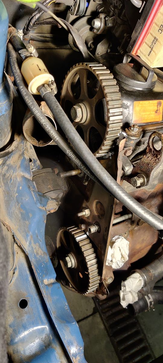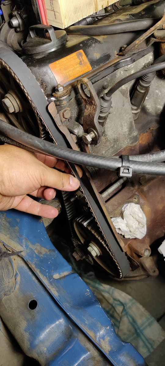 Zahnriemen ist herunter, alles nach Anleitung aus eurem Wiki. Hat alles ganz gut funktioniert, man sollte allerdings darauf achten in welche Richtung man die Spannrolle spannt. Das hat großen Einfluss ob die Abdeckung drauf geht. Das könnte man im Wiki noch ergänzen. Hier ein paar Bilder.