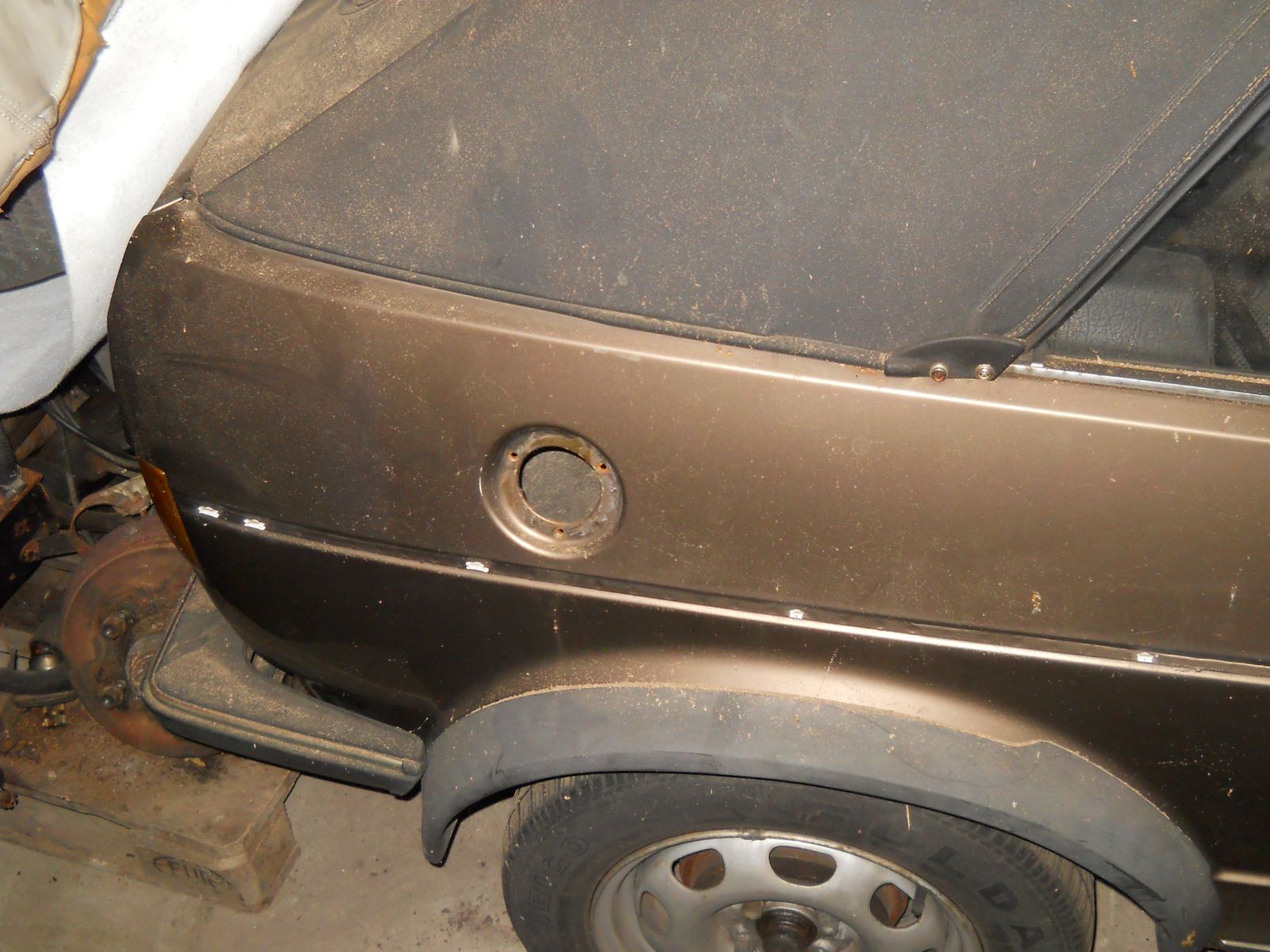 Tank, Kraftstoffpumpe samt Filter und Schläuchen/Rohren, BKV, Kühler, sämtliche Schlösser, Kühlergrill, Spoiler und Verbreiterungen usw sind als NOS-Teile da, also recht wenig Beschaffungsaufwand.