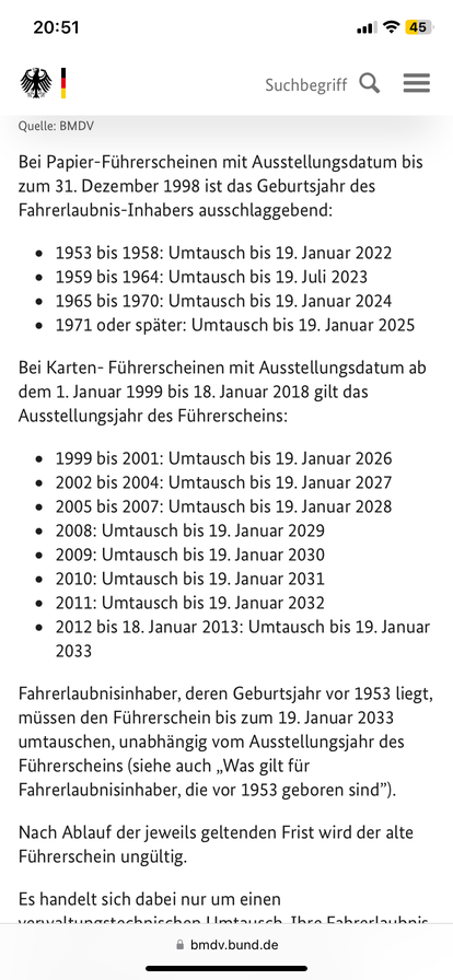 immer wieder liest man in der Zeitung dass vorhandene Führerscheine gegen die in Scheckkartenformat umgetauscht werden müssen. Bisher hat sich aber noch keine zuständige Stelle bei mir gemeldet um diesen Vorgang auf den Weg zu bringen. Daher meine Frage an alle, die schon getauscht haben: Muss man selber tätig werden und wenn ja, wo geht man hin? Natürlich wohne ich nicht mehr dort, wo der Führerschein ausgestellt wurde. Gibt es andere Fallstricke bei der Angelegenheit?