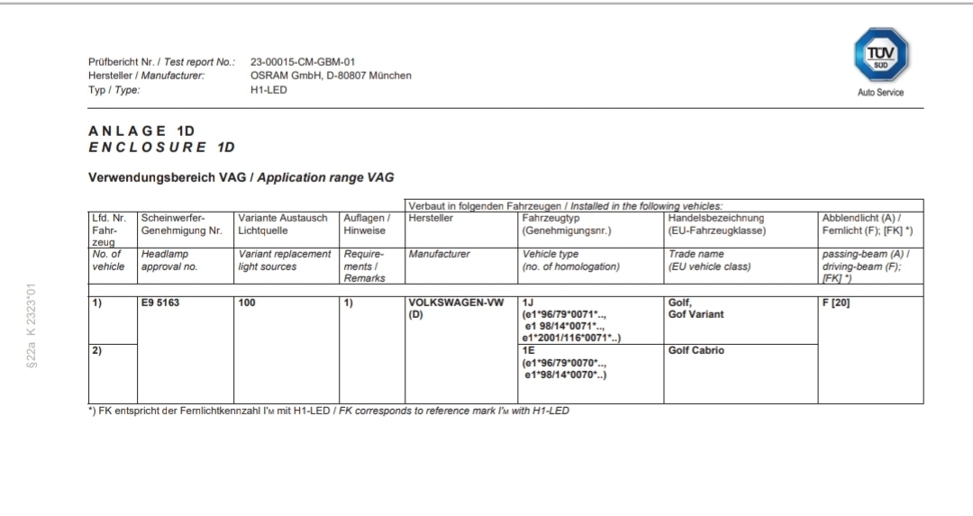 Bei Osram sind neben den Hella (E1 761) nun auch die Valeo (E9 5163) zugelassen worden.