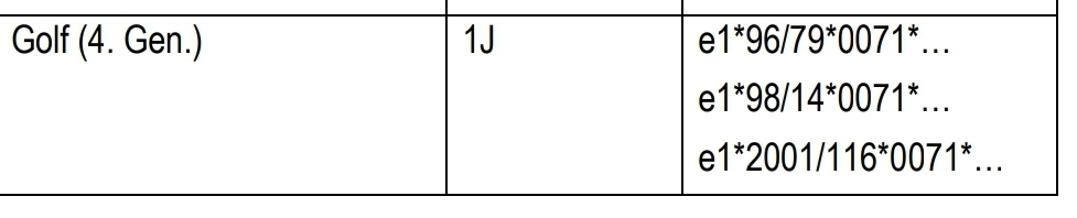 nur der Golf 4 Typ 1J aufgeführt.