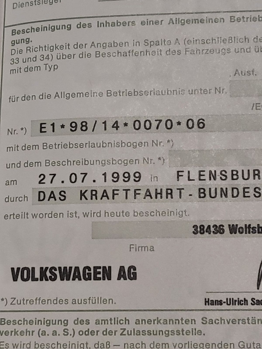 Da gab es dann einen bösen Zettel damit man dann beim Ihm persönlich vorstellig wird plus Bußgeld, da er nicht glaubt das man sowas eintragen lassen kann weil es ja kein Golf 4 ist.... Er hat sich auch etwas lustig gemacht über so ein altes Auto. Wahrscheinlich wollte er sich vor seiner jungen Assistentin profilieren.