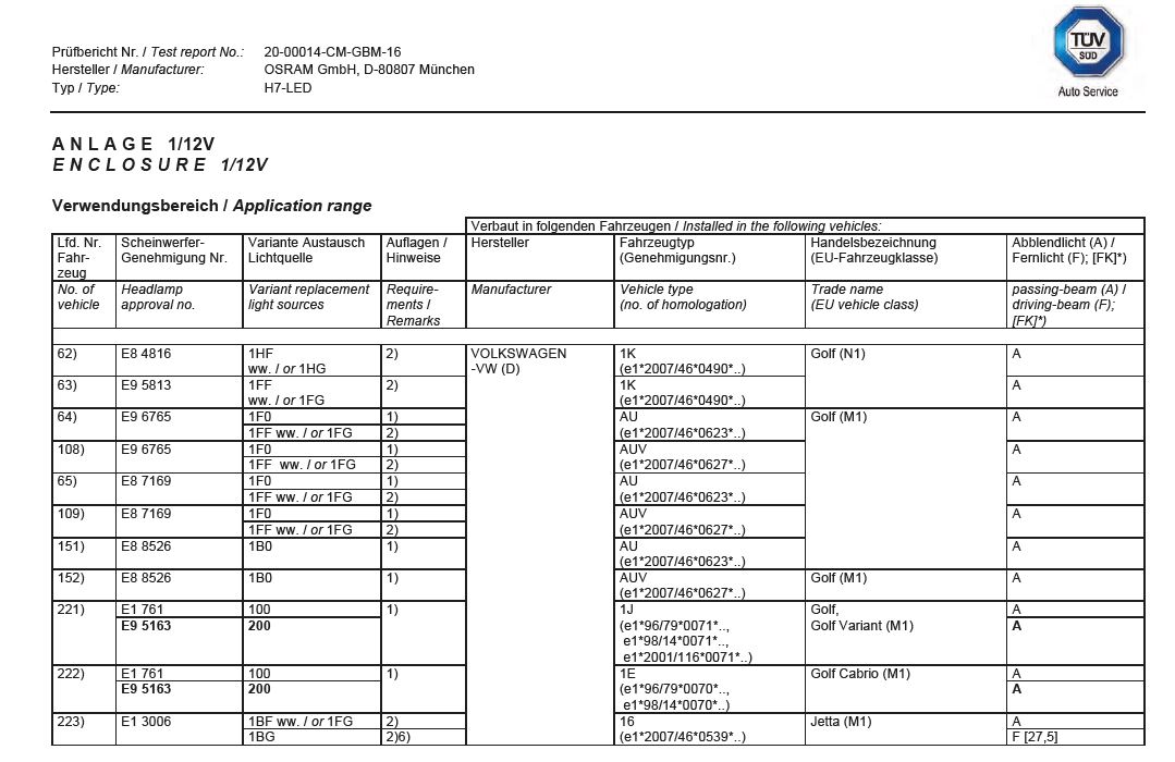 Legale LED Leuchten für Golf 4 Cabrio