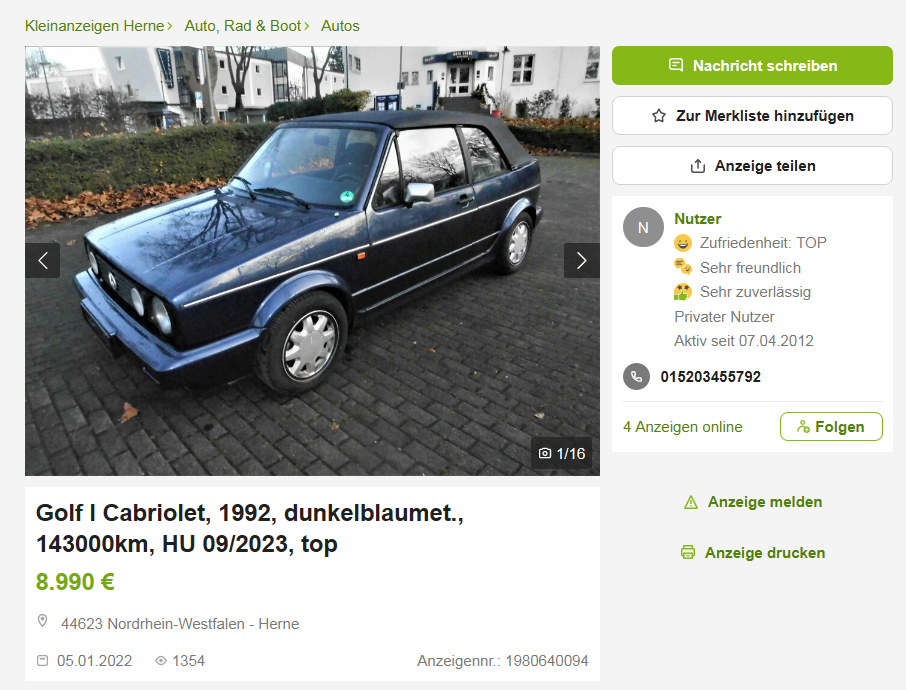 Da musstest du dir doch echt viele Fahrzeuge anschauen, um endlich ein gutes Cabrio zu finden. Auf den Bildern sehen die immer gut aus. Die Realität ist meistens anders. ?(
