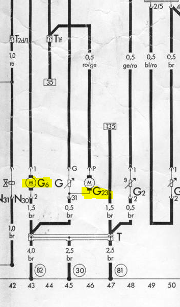 Braun ist grundsätzlich immer Masse und die sollte immer vom Feinsten funktionieren. Die anderen sind Stromleitung Pumpe und das andere Tankanzeige im KI. Udo hat dir ja schon den SLP gezeigt.