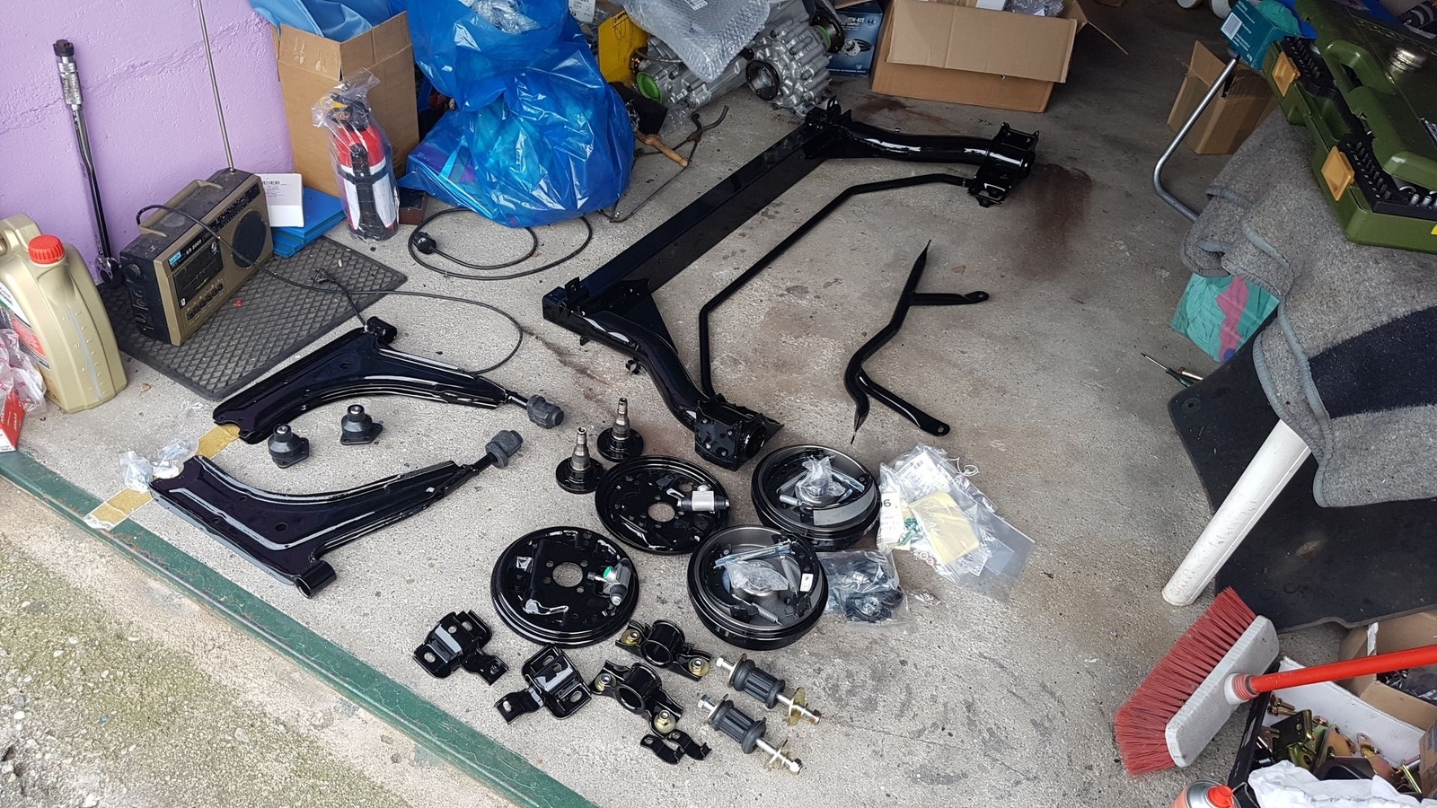 Ausser den Bremstrommeln nebst Bremsteilen und natürlich den Lagern sind das alles original Teile vom Genesis.