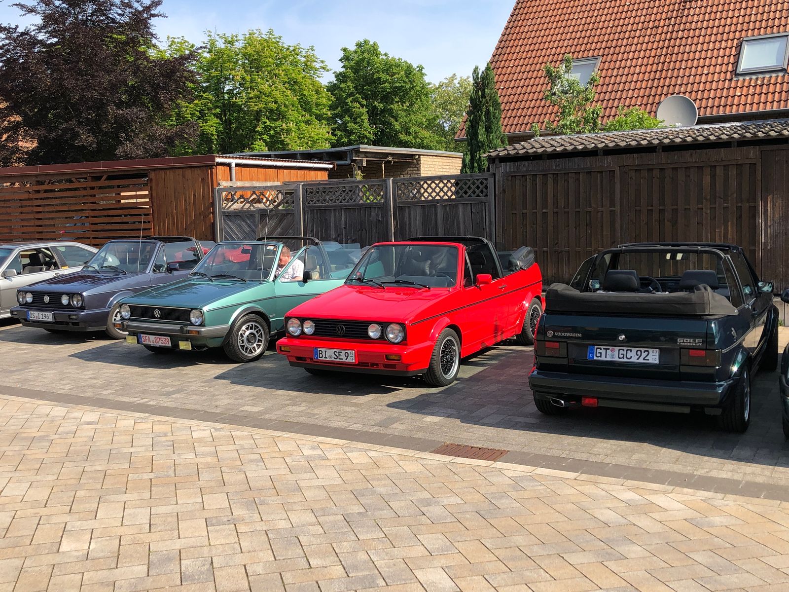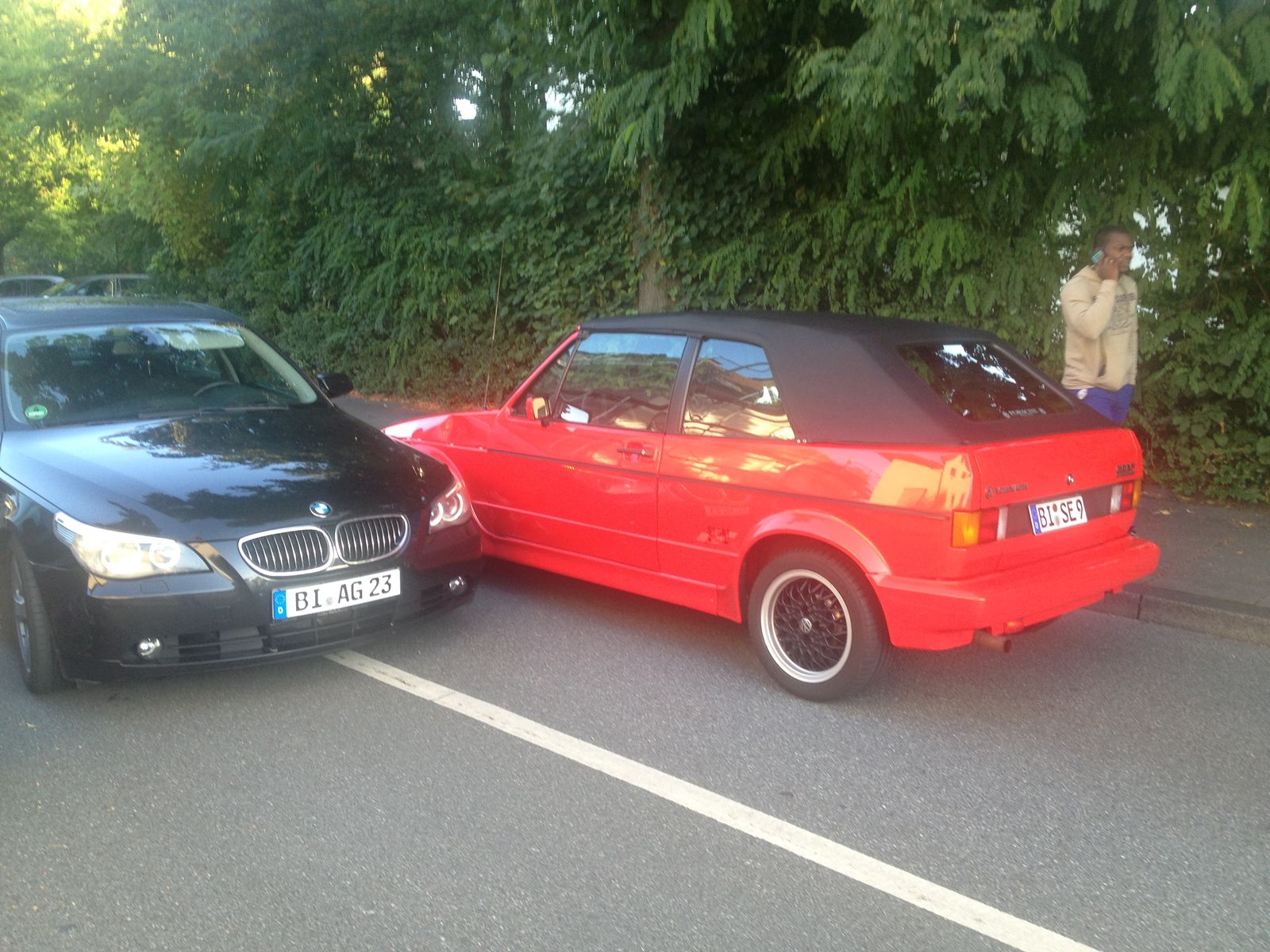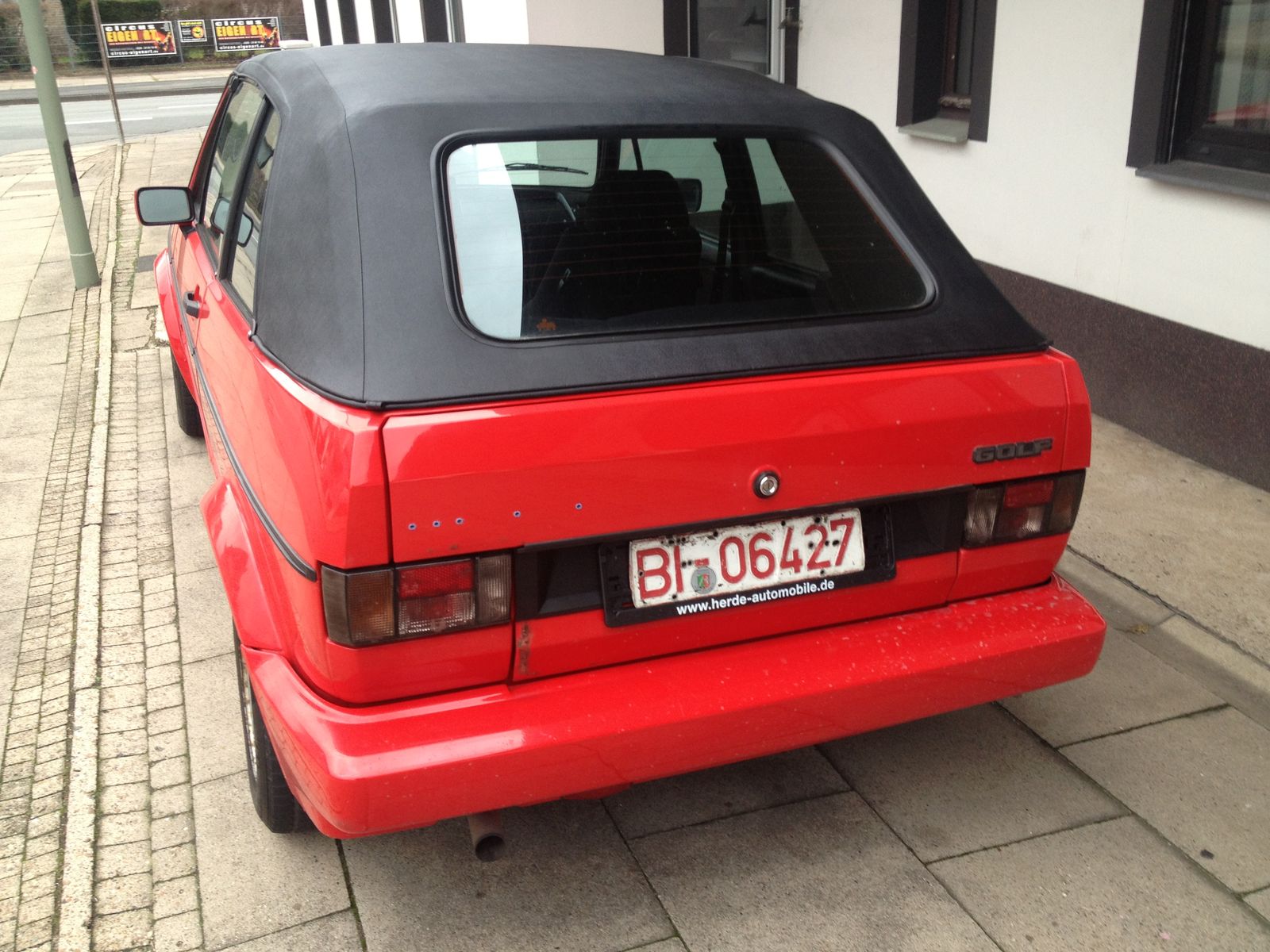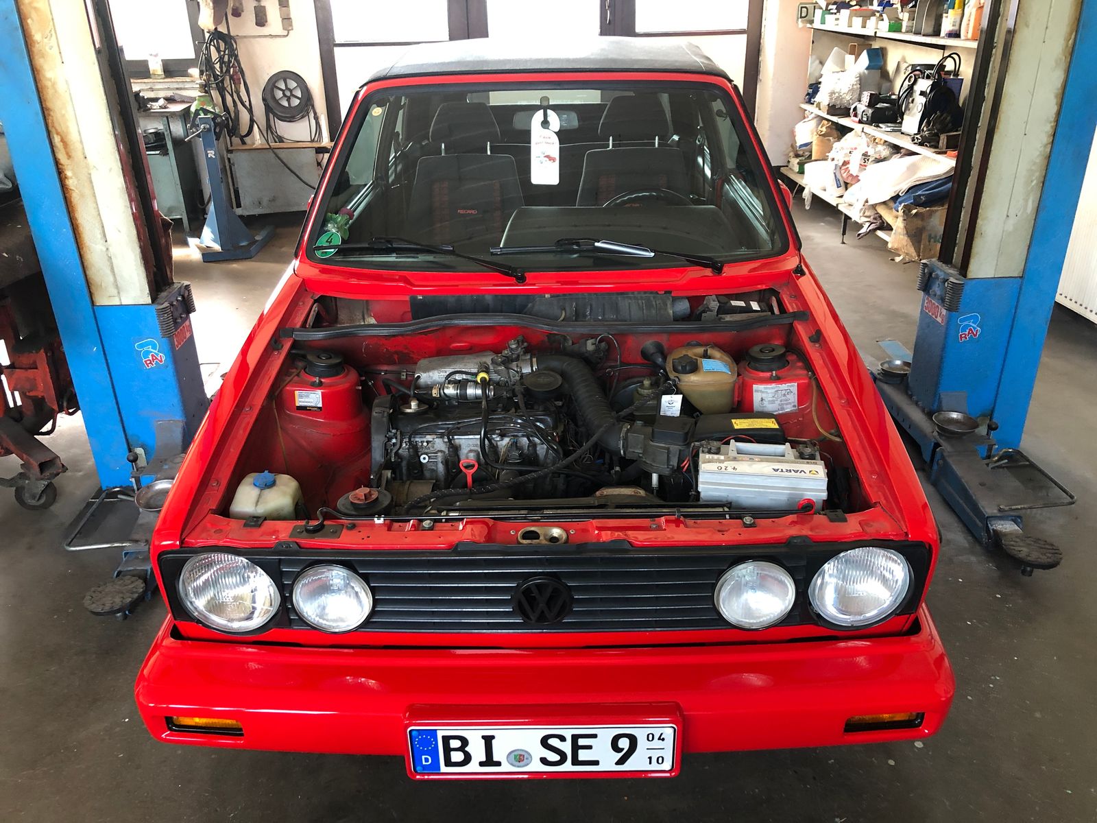 Es ging zu einem Fähnchen und Kiesplatzhändler nach Bohmte (zw. Osnabrück und Dümmer) und ich kaufte kurzerhand für kleines Geld dieses rote Cabrio mit viel Arbeit. Entscheident war, das die Recaro-Innenausstattung und das Verdeck OK waren, Blech, Technik und Lack konnte gut gerichtet werden.
