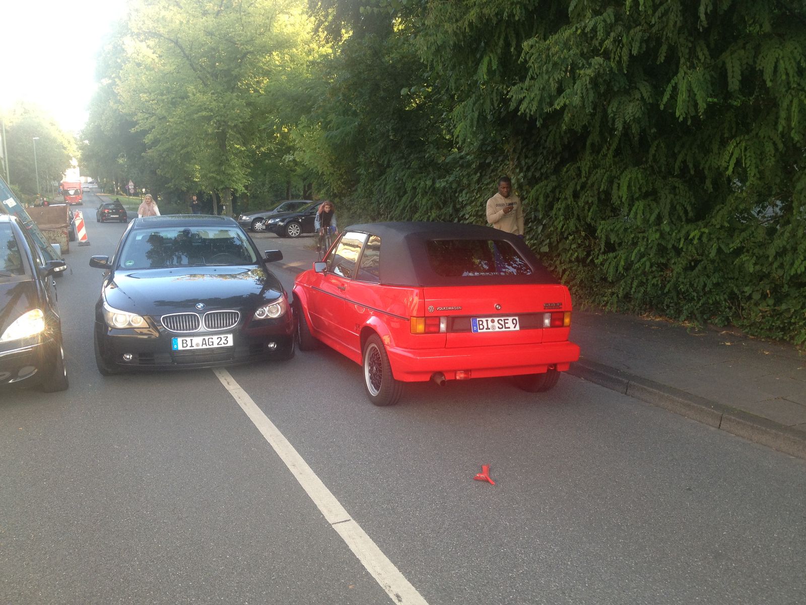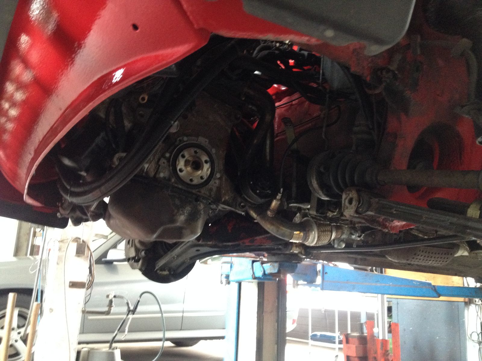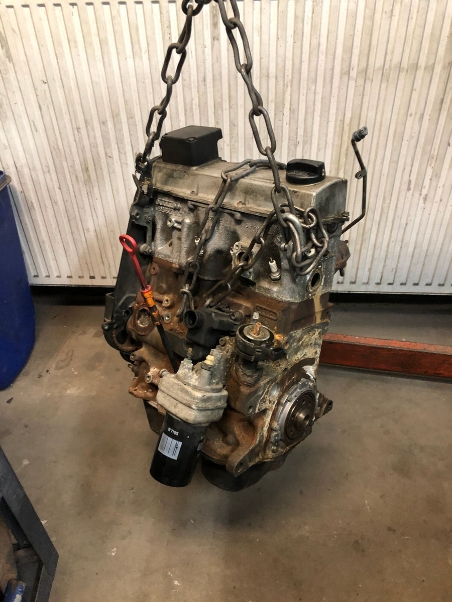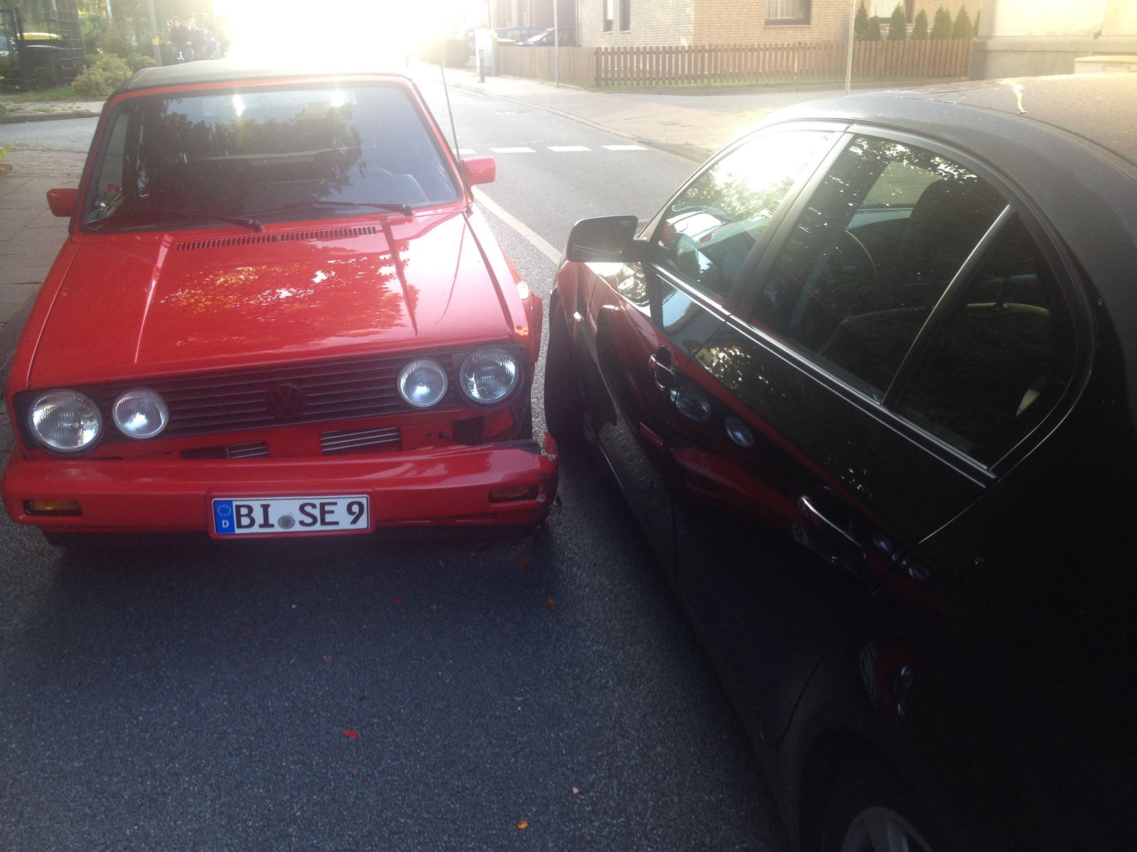 Es ging zu einem Fähnchen und Kiesplatzhändler nach Bohmte (zw. Osnabrück und Dümmer) und ich kaufte kurzerhand für kleines Geld dieses rote Cabrio mit viel Arbeit. Entscheident war, das die Recaro-Innenausstattung und das Verdeck OK waren, Blech, Technik und Lack konnte gut gerichtet werden.