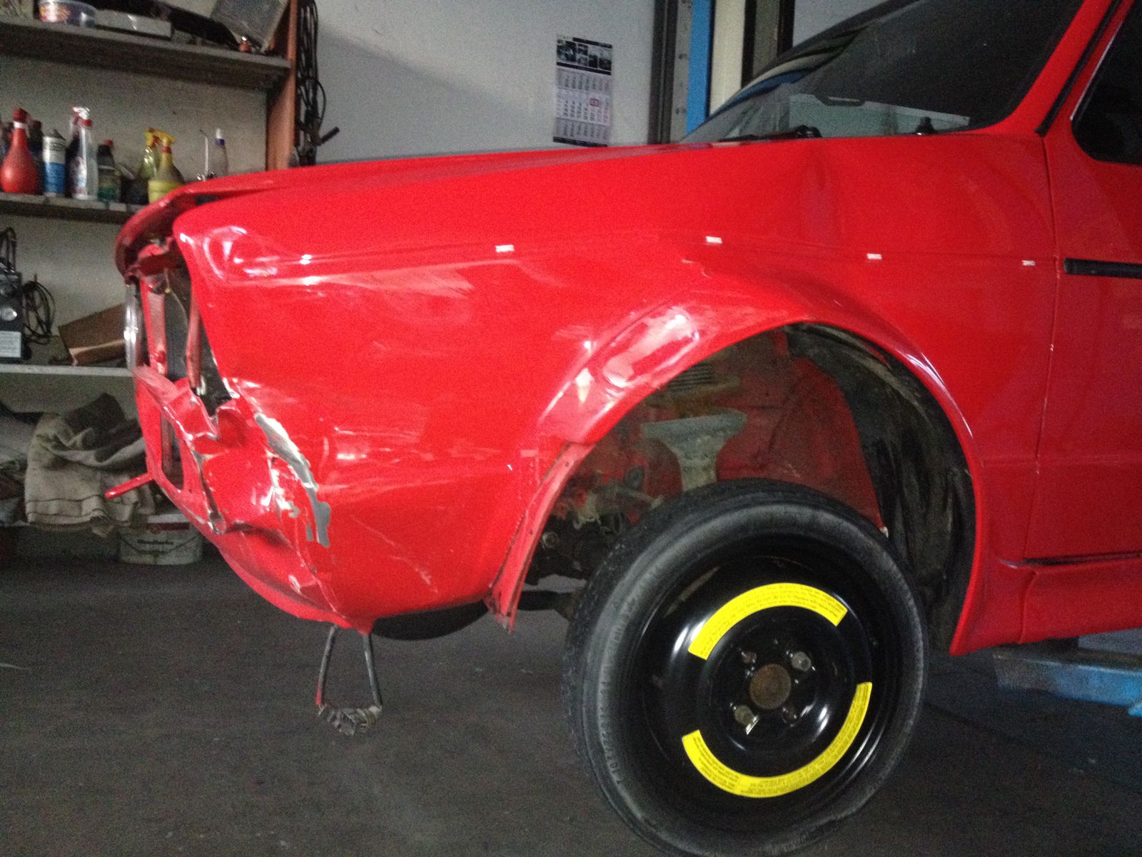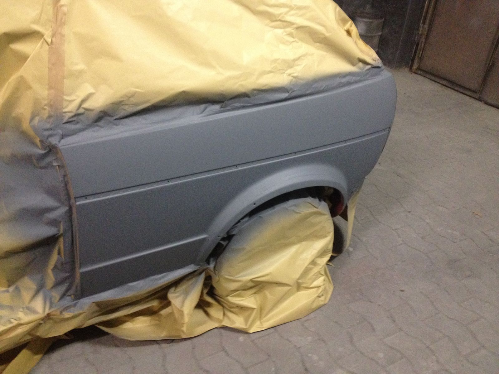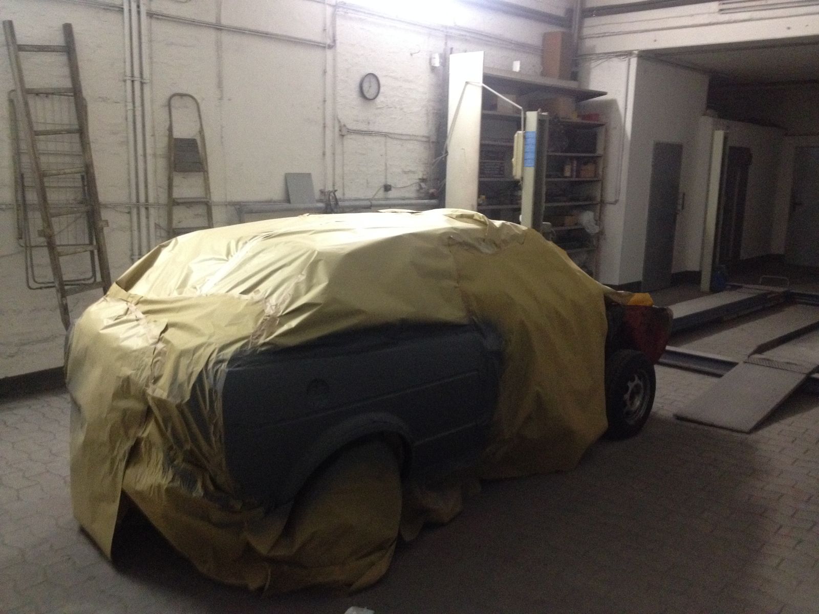 Es folgte die große Reinigung und Zerlegung für Lack & Karosserie, glücklicherweise waren nur schraubbare Teile (beide Türen, Heckklappe, Kotflügel, Tankrohr) von Unfall und Rost betroffen: