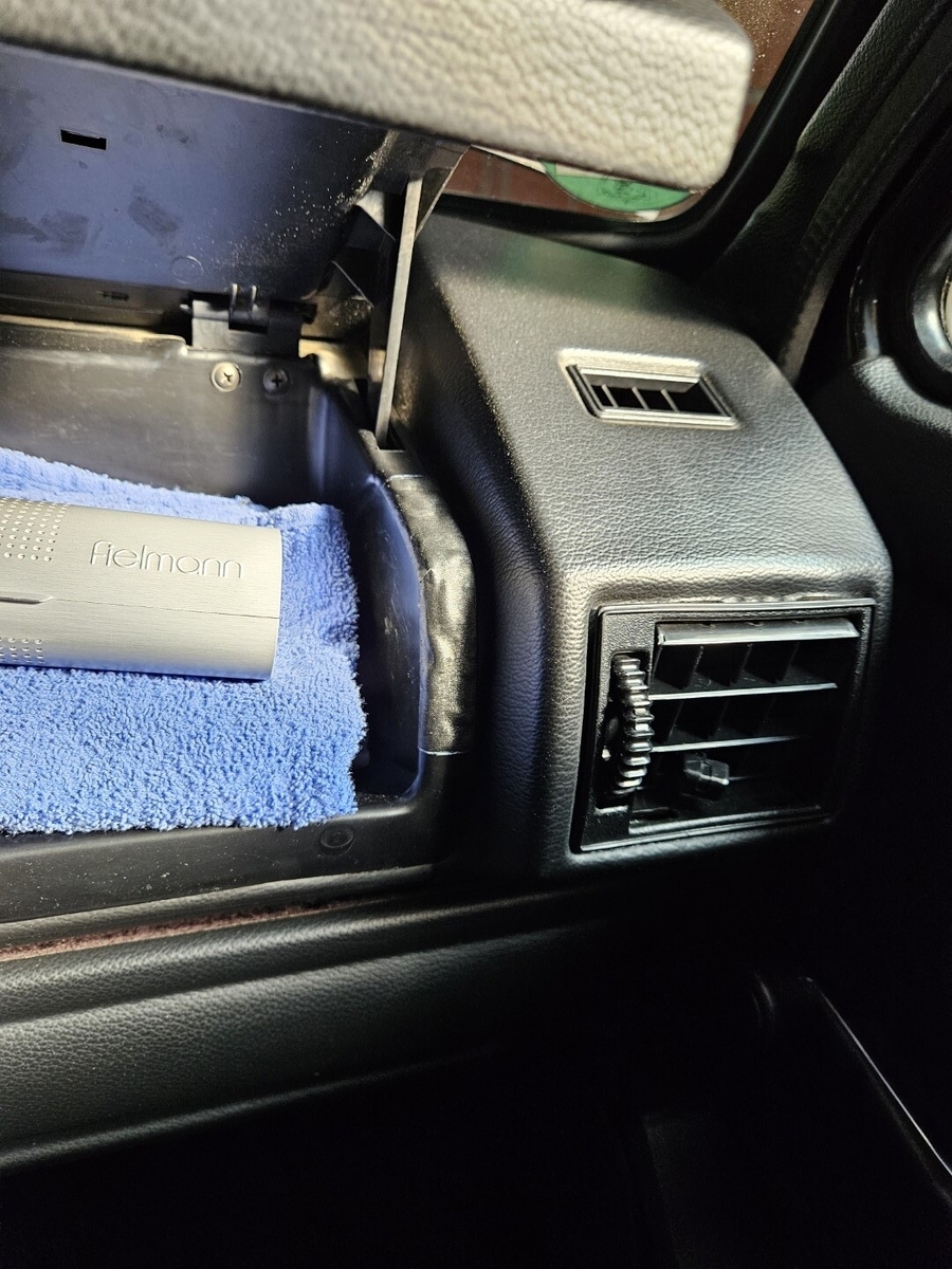 Ich habe durch den Ring in der Mitte einen Schaumstoffwürfel gesteckt. Ich weiß nicht mehr ob der rechts und links 1 oder 2, oder mehr oder weniger cm rausstehen darf, aber das siehst du, wenn du die rechte Lüftungsdüse ausbaust. dahinter sitzt die Feder. Den Schaumstoff so, dass er leicht an der Kunststoffwand vom Handschuhfach anliegt und nicht klappern kann.