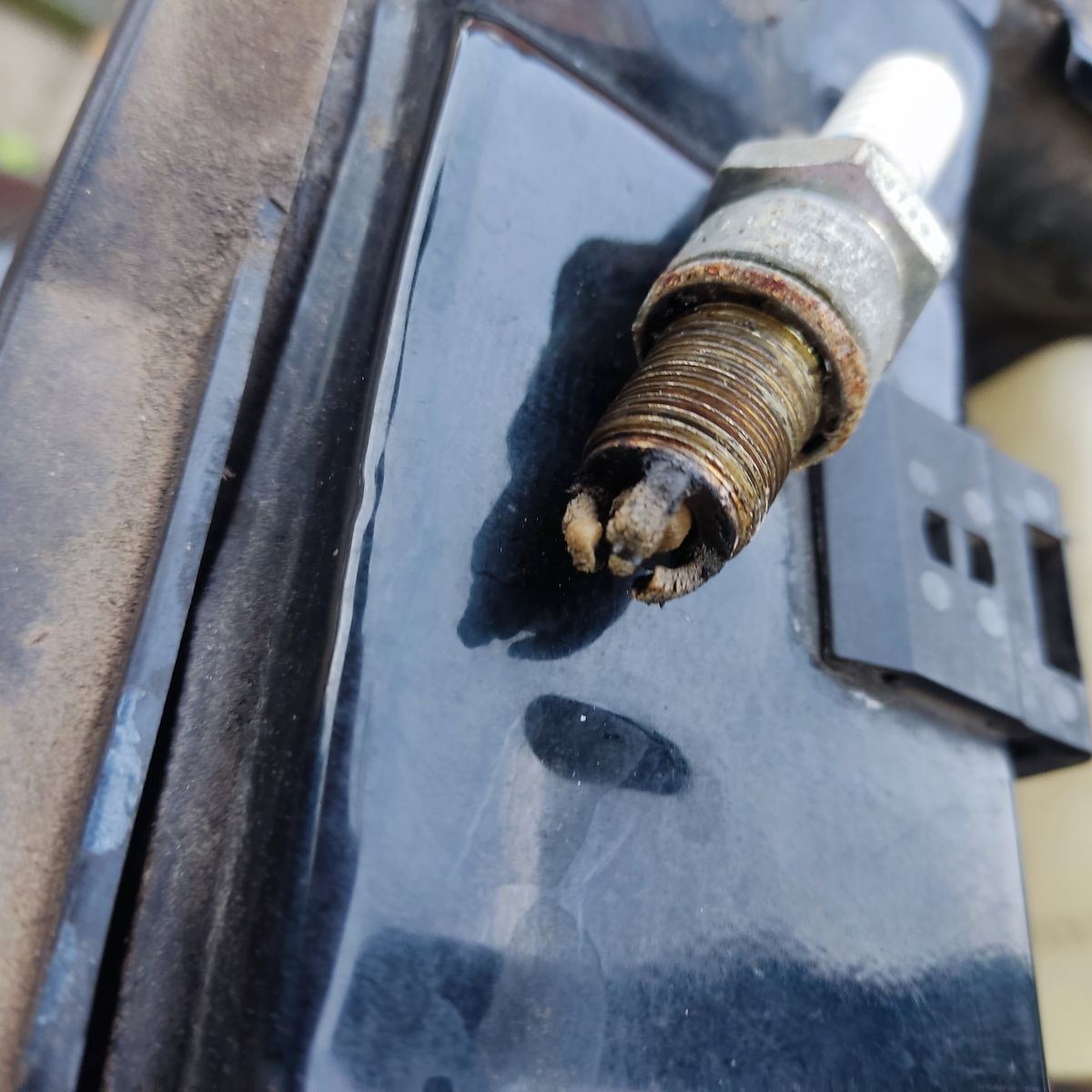 Die Kerzen sind auch nicht verölt - lässt drauf schließen das die Kolbenringe noch lebendig sind. Aber ganz schön verbrannt und ablagerungsreich (Welche sind das ? Stimmt der Wärmewert ?)