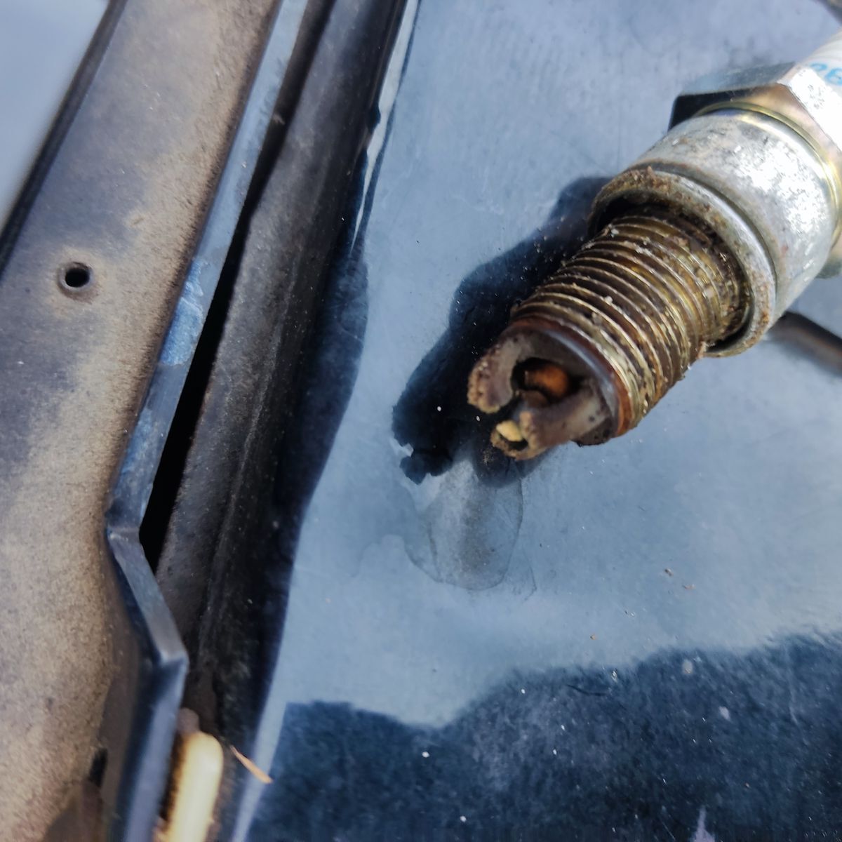 Also Zündkerzen raus, die total beschissen aussahen und dann dürch das Zündkerzenloch in den Brennraum geschaut...