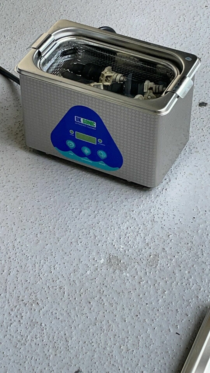 Alles in mein neues Ultraschallreinigungsgerät gepackt, eingesteckt und ein langes Gesicht gemacht.