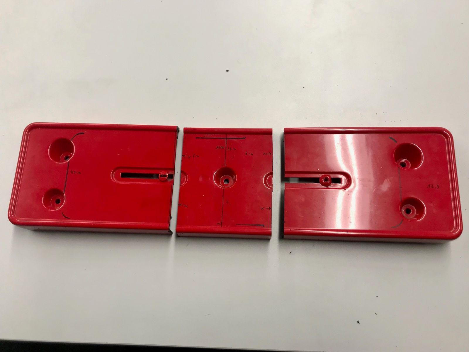 Allerdings ist der Halter jetzt so schmal, dass die vier Schraublöcher des längeren Halters in der Stoßstangen zu sehen waren.