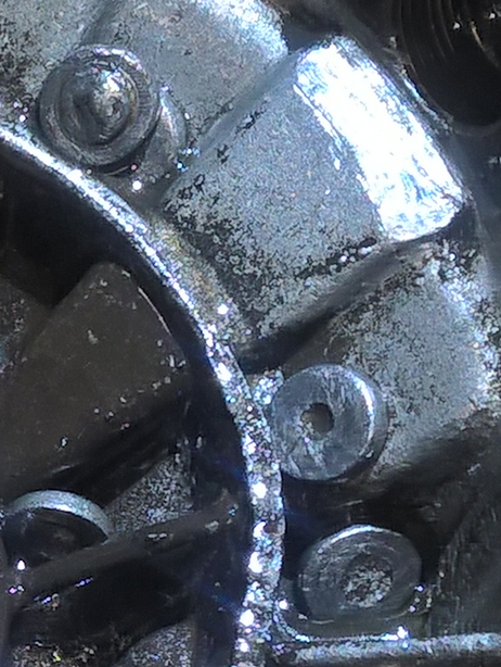Eine Diffniete scheint im Inbegriff der Auflösung zu stehen, da ist ein Riss zu sehen und mit dem Fingernagel auch zu fühlen.