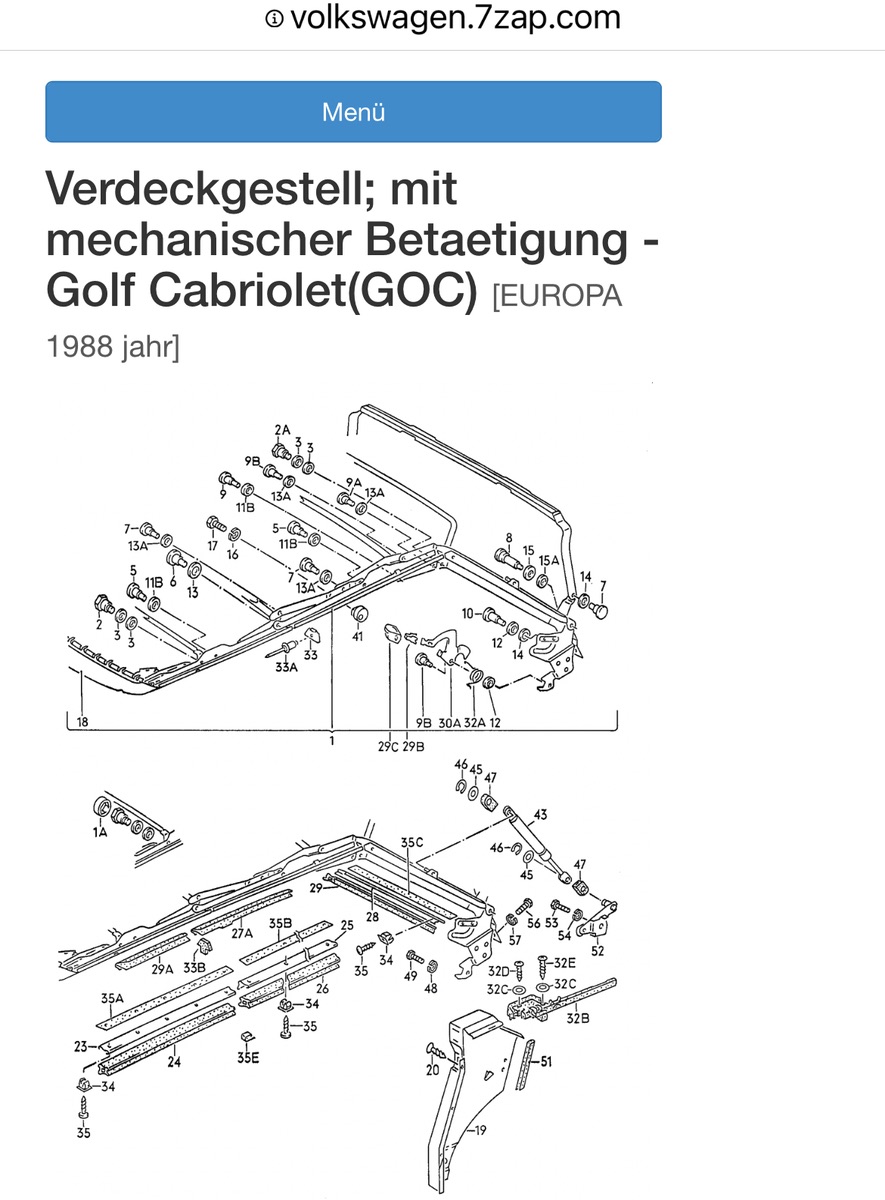 Verdeckblende Golf 1 Cabrio 1988