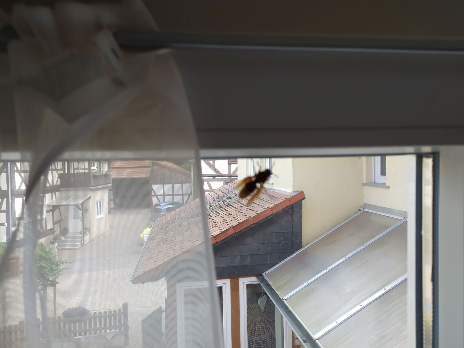 Das ist eine 08/15 Haus-Feldwespe - ein sogenanntes Wald-und Wiesen-Flipflop - und sie ist pazifistisch: