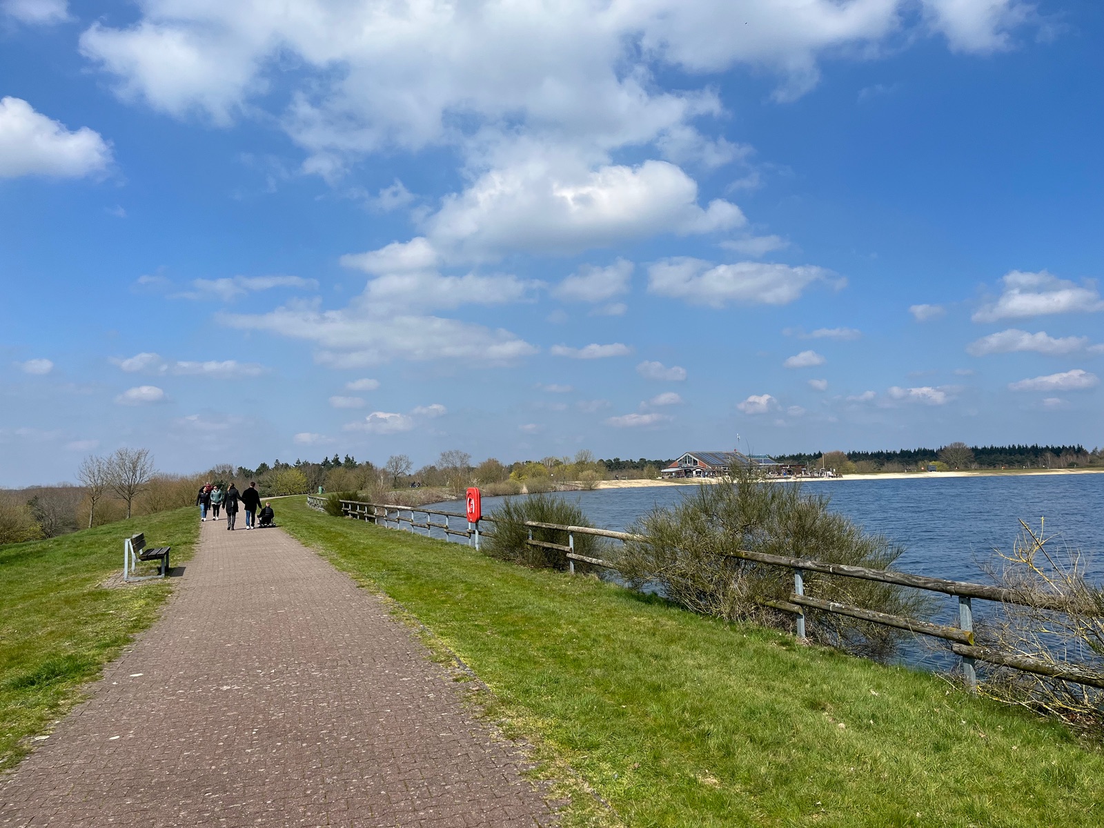 Na - nicht ganz so weit! Wir haben im VW Emsland unweit von Lingen den Speichersee Geeste. Da gibt es Strandgefühl pur eine gute Restaration mit Biergarten, Pommes- und Dönerbude, Surferparadies und einem ca. 6 km langen Rundweg.