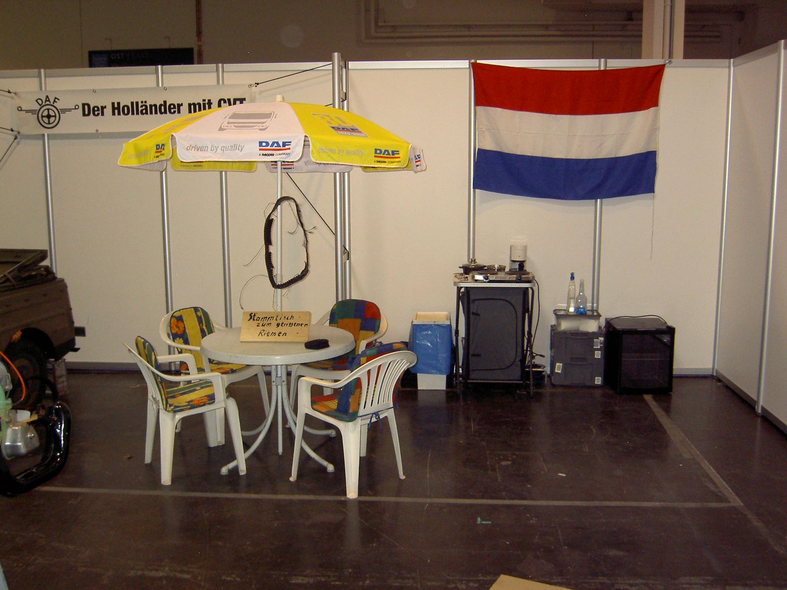 Alles anzeigenHeute hat mich erfreut das der DAF-Stand schon fast fertig ist. Nur noch Kleinkram und das dritte Auto hinstellen - am Mittwoch geht die Techno Classica los