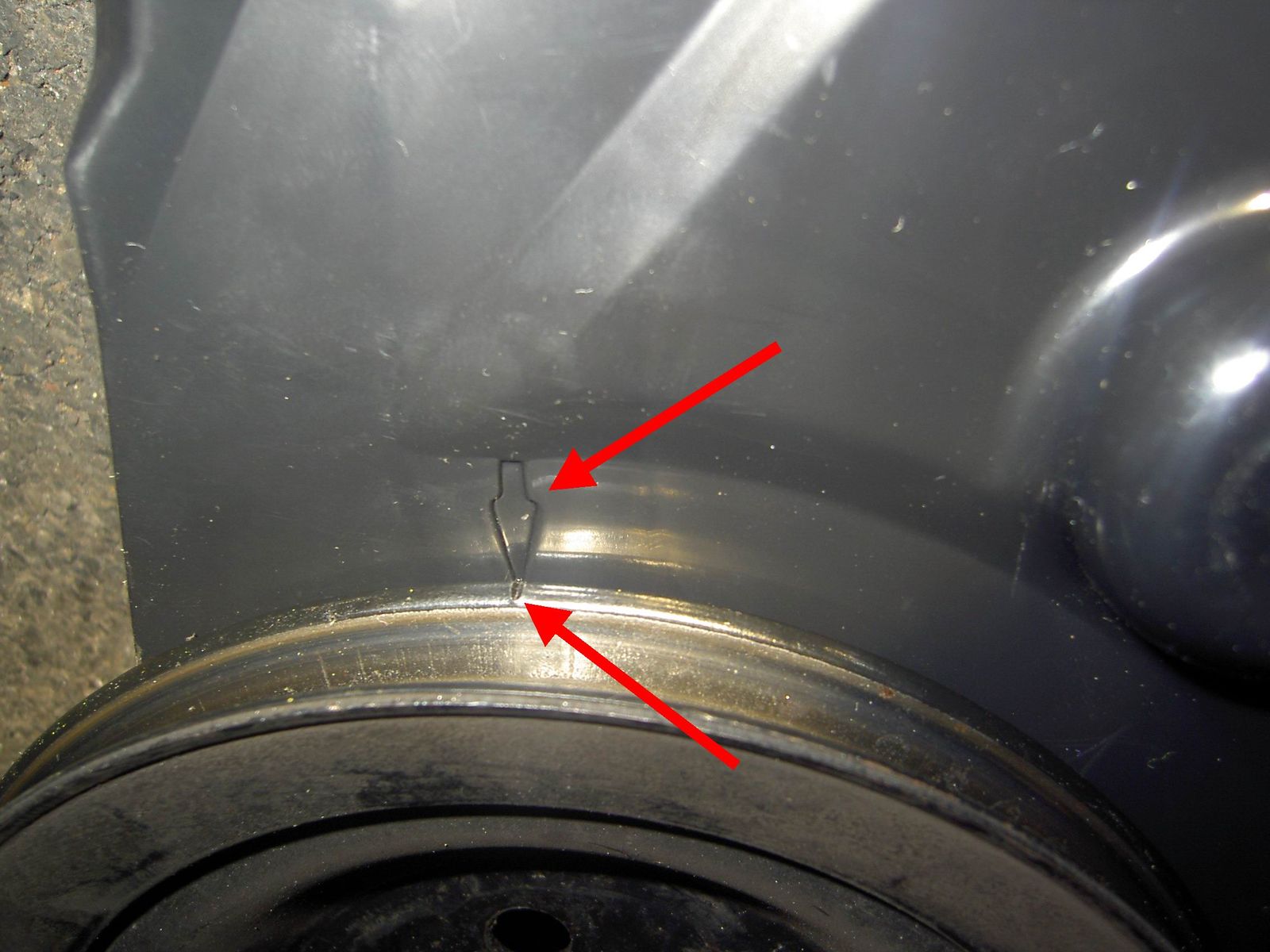 Kurbelwellen-Riemenscheiben-Kerbe auf Pfeil der unteren Abdeckung = OT: