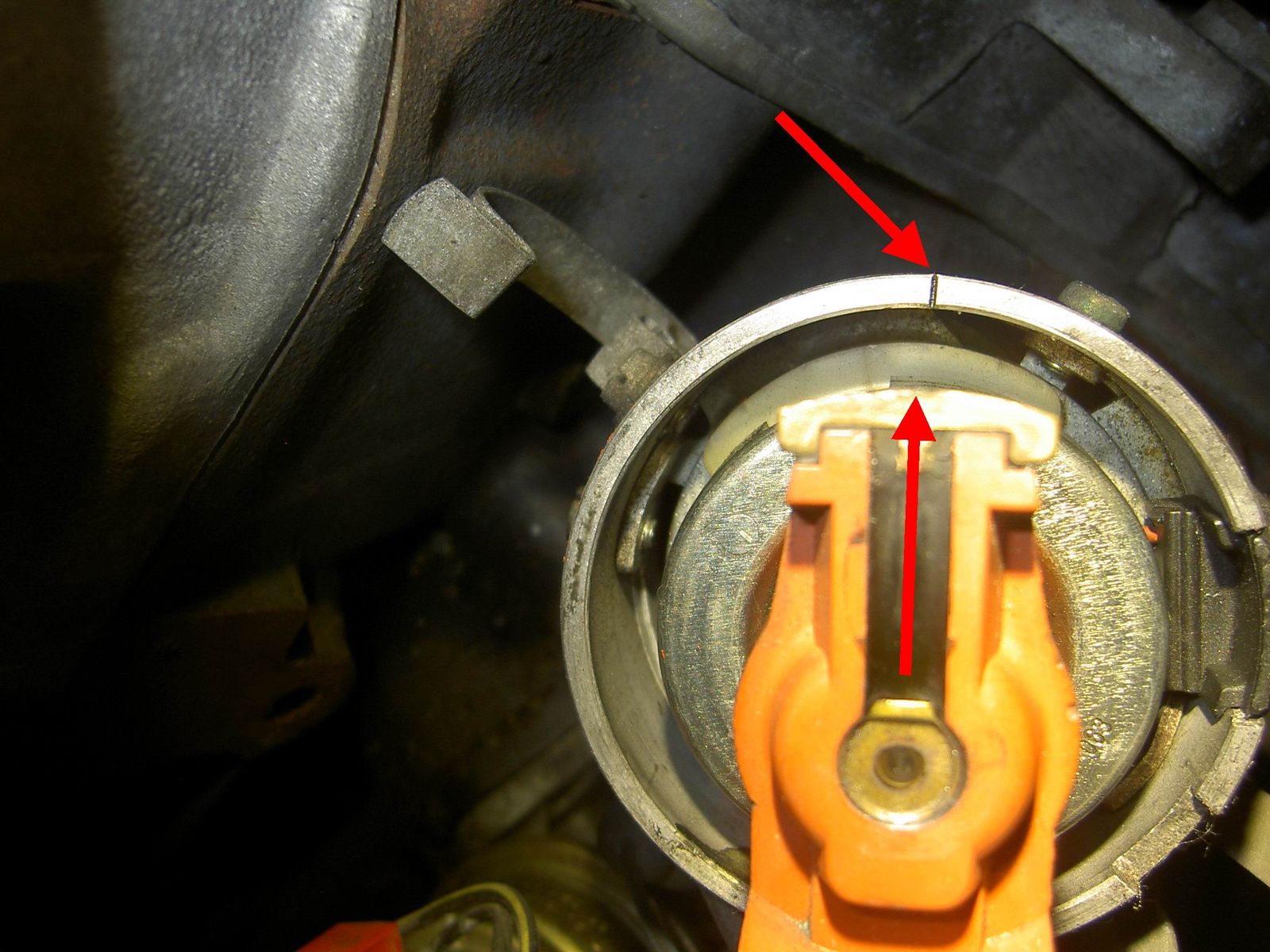 Kurbelwelle auf OT (auf Schwungscheiben "o" Markierung) und Kerbe mit einem Meisel neu gesetzt.