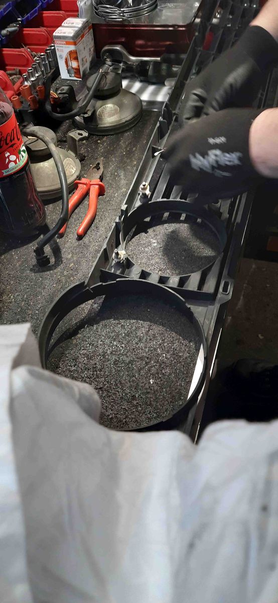 Ich bin aber Kummer gewohnt. Hatte im Laufe der Jahrzehnte etliche Komplettrestaurationen, wo die Eigentümer schon alles zerlegt und angefangen haben, und dann liegen alle Kleinteile und Schrauben unsortiert und ungereinigt in einem einzigen Karton. Natürlich auch vergurkte, abgerissene, dazu Kronkorken vom Frustbier, altes Schleifpapier und Fettlappen, Mäuseköttel...