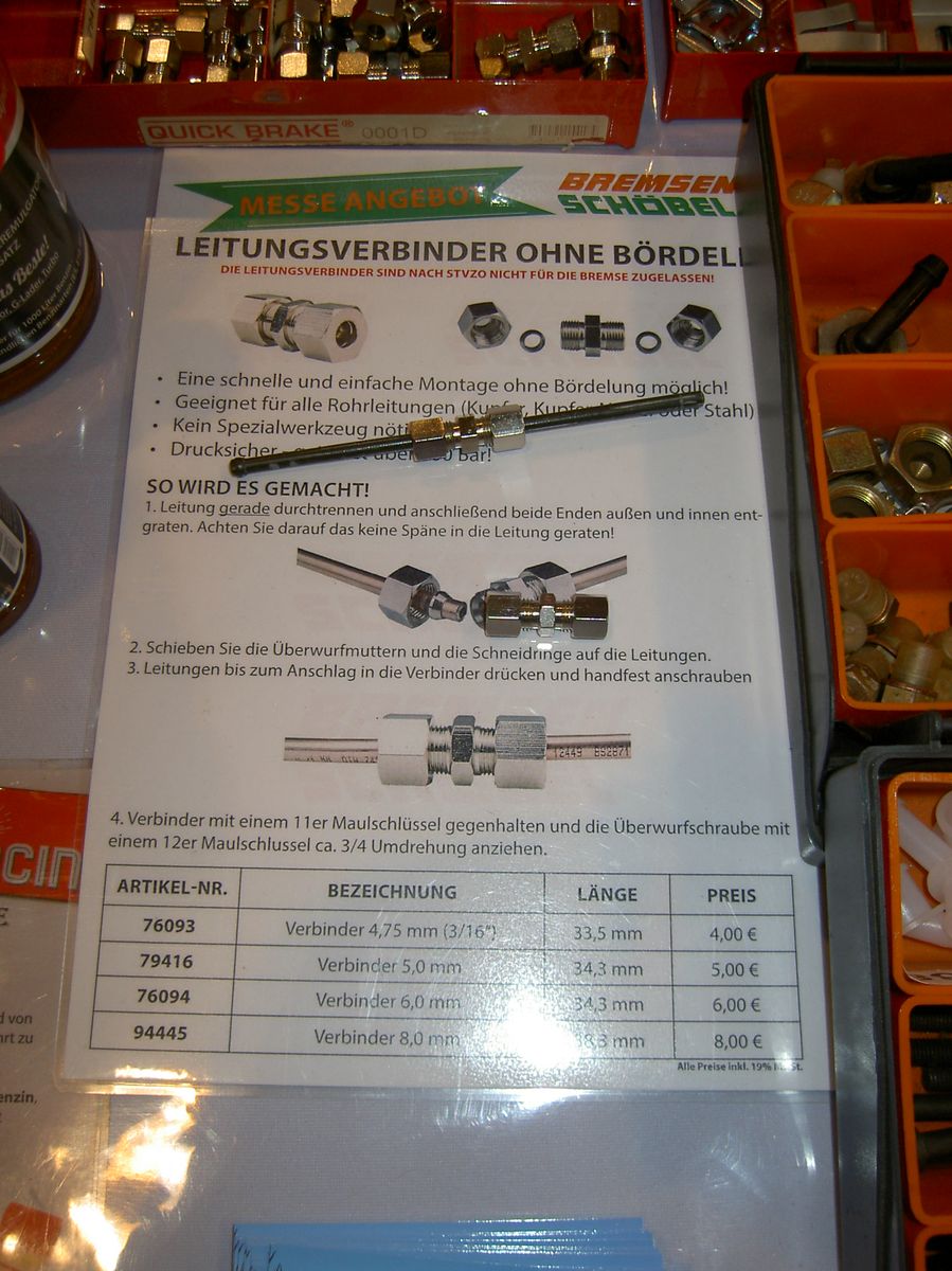 @udo: Mit Verschraubungen ohne Bördel habe ich keine guten Erfahrungen gemacht und ein befreundeter Gutachter sagte die Dinger sind auf der Straße nicht erlaubt. Das ist zumindest das was ich dazu sagen kann.