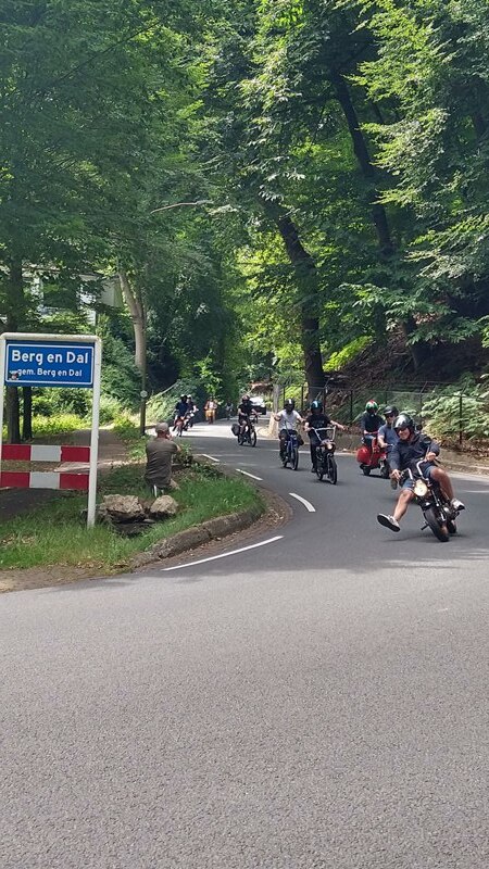 Über 40 "Kleinkrafträder", egal ob Puch Maxi N oder S, Vesparoller, Simson oder sonstwas, haben wir auf eine 75km-Tour durch den linken unteren Niederrhein und das angrenzende kleine Königreich geschickt. Schön war's. Ich als Nichtzweiradbesitzer war der Servicewagen zum Nachtanken, Rote Laterne oder Werkzeugspender bei losgerappelten Nummernschildern.