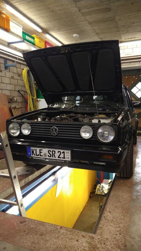 Habe heute am Cabrio den Getriebeölstand überprüft, an den Federbeinen noch mal alles auf festen Sitz geprüft nachdem die neulich ja raus waren, Auspuffschellen nachgezogen weil wieder geblasen wurde, Udo wird sich erinnern dass er mir das Lager für die Getriebeaufhängung unterm Luftfilter eingepresst hat, heute habe ich das dann mal eingebaut und mir dabei ein Auto ohne Servolenkung gewünscht und die Räder habe ich von vorn nach hinten getauscht.