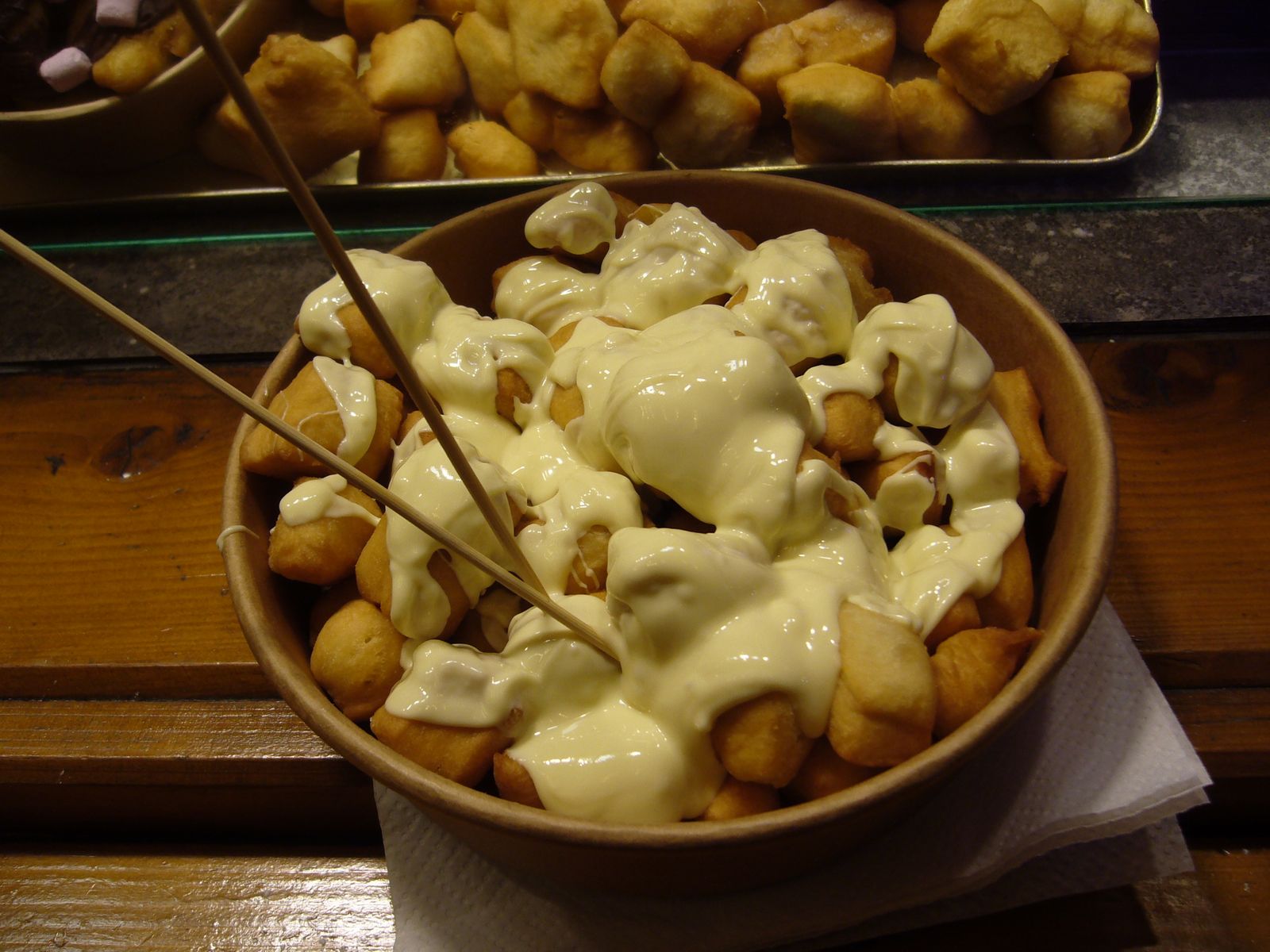 Es gab auch eine Kleinigkeit zu essen. Die Reihenfolge krieg ich nicht mehr so ganz gebacken aber Schmalzkuchen, Asia-Nudel-Snack mit Knofi, Rindfleischpeitsche mit Knofi, Champignonschale mit Knofi, ein Schtratzia-Teller-Eis mit Schoko drauf, gebrannte Mandeln, eine Kamen-Bert-Schale mit Preiselbeeren und eine Portion Prager Schinken spielten eine Rolle dabei. Und damit ich nicht hungrig ins Bett muß mache ich mir gleich noch 2 Tüten China-Süppchen warm - sonst werde ich mit knurrendem Magen wach...