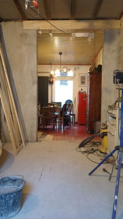 Unser Durchbruch von Wohn- zu Esszimmer ist drin mit Leimbindern und fertig verputzt habe ich auch.