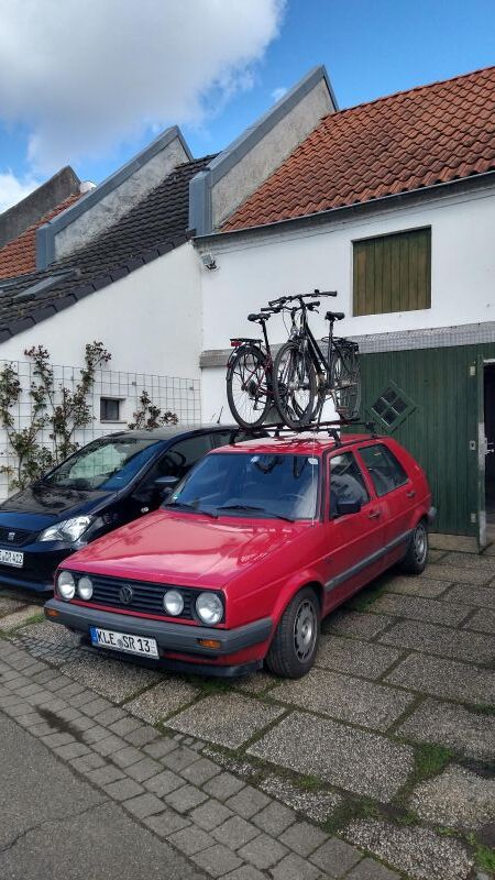 Für eine Fahrradtour war das Wetter freundlich genug und morgen geht es auf der Baustelle weiter. Eigentlich brauche ich keinen Fahrradträger denn ich müsste die Fahrräder nur hinten auf die Pritsche schmeißen, aber die steht schon voll beladen mit Muttererde aus dem Wohnzimmer vor der Haustür.
