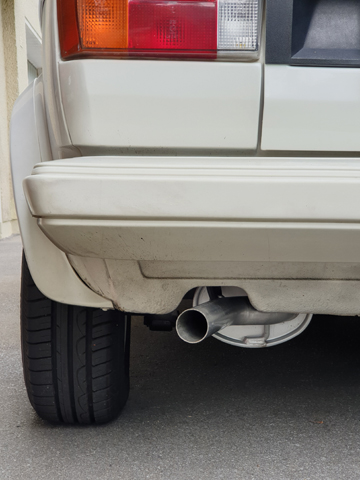 Endlich mal die neue Abgasanlage eingebaut. Die Passform von imasaf ist klasse, klappert nicht, dröhnt nicht, klingt nicht defekt. Noch nicht dicht aber das ist ja ein anderer Punkt. Ist ein DX-Misch, sprich Hosenrohr vom Cabrio mit Klammern und dann MSD und ESD von der Limo wegen den Haltern.