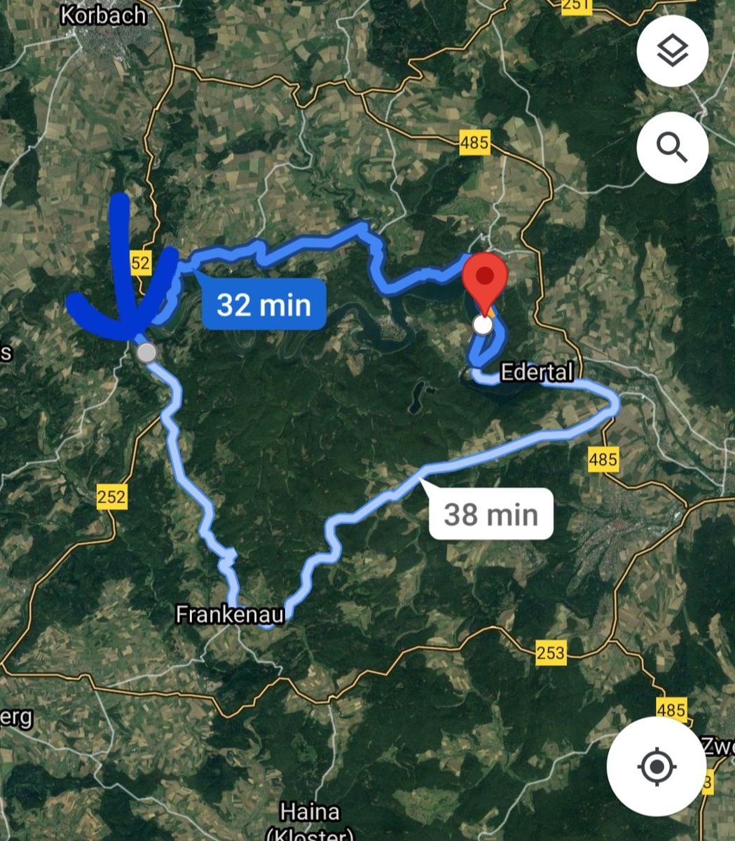 Naja,du warst in der Nähe. Sind von der Talsperre knapp 25 km...