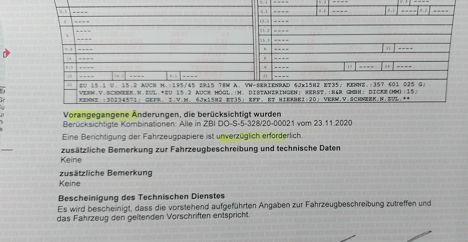 5 Min und ein paar Euronen später waren die 195 45 R15 Reifen und 15mm Platten eingetragen...