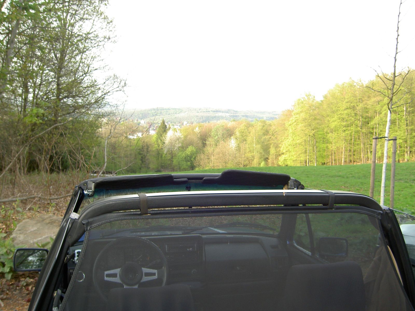Ich konnte offen fahren - Klasse! Weil ich im Winter keine Probefahrt machen konnte, musste ich heute feststellen dass sich die Mühe gelohnt hat, ich habe quasi ein neues Auto: Nach dem Tausch der Motorlager läuft der so leise und geschmeidig, das war noch nie so. Auch Stoßdämpfer und Domlager sind neu, das fährt sich ganz anders und den zuletzt hemmungslos brüllenden Walker-Auspuff konnte ich ersetzen durch ein Teil dass Mr. Moon im Ausschank hatte.